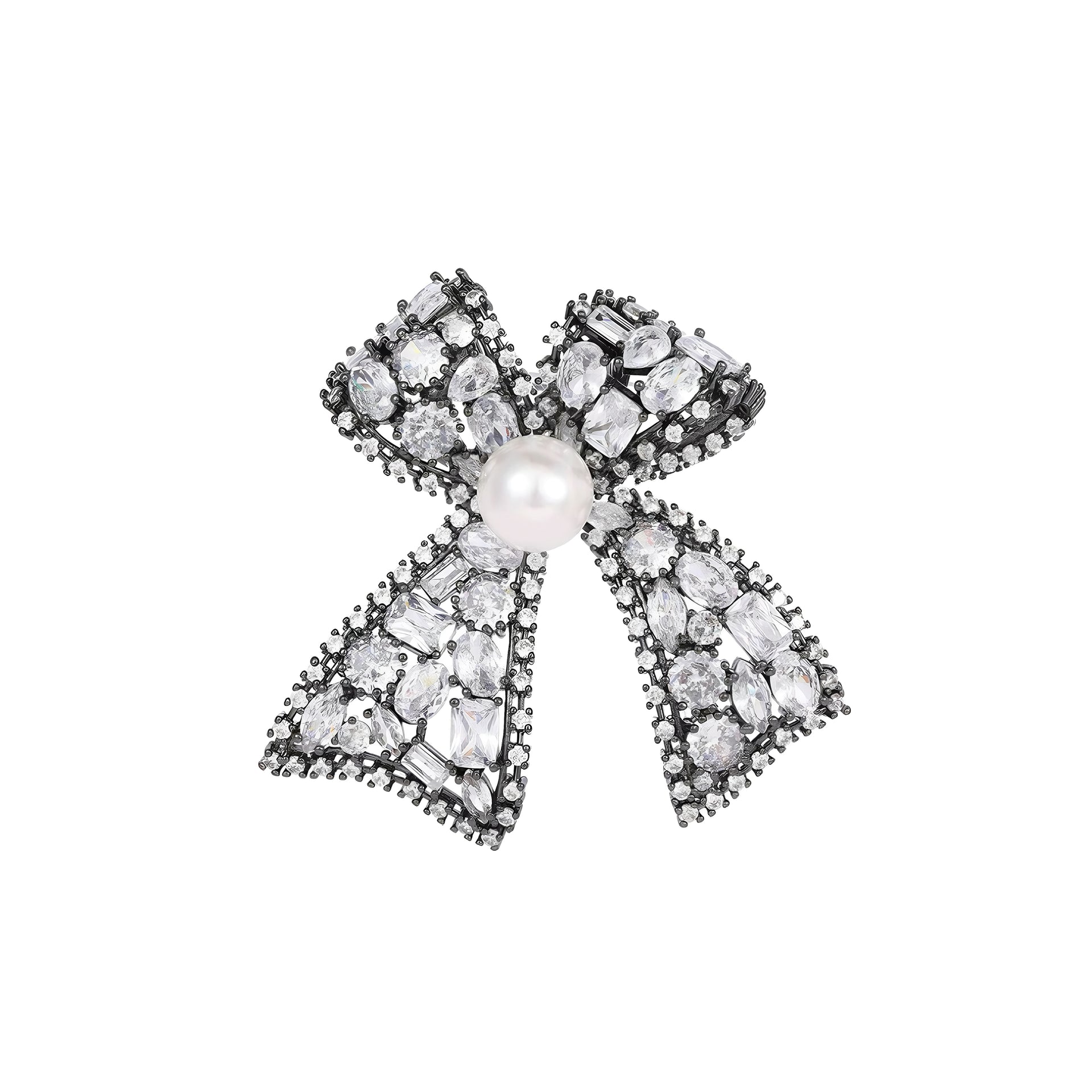 Celeste Noeud Haute Couture White Gold Bow Brooch with Pearl