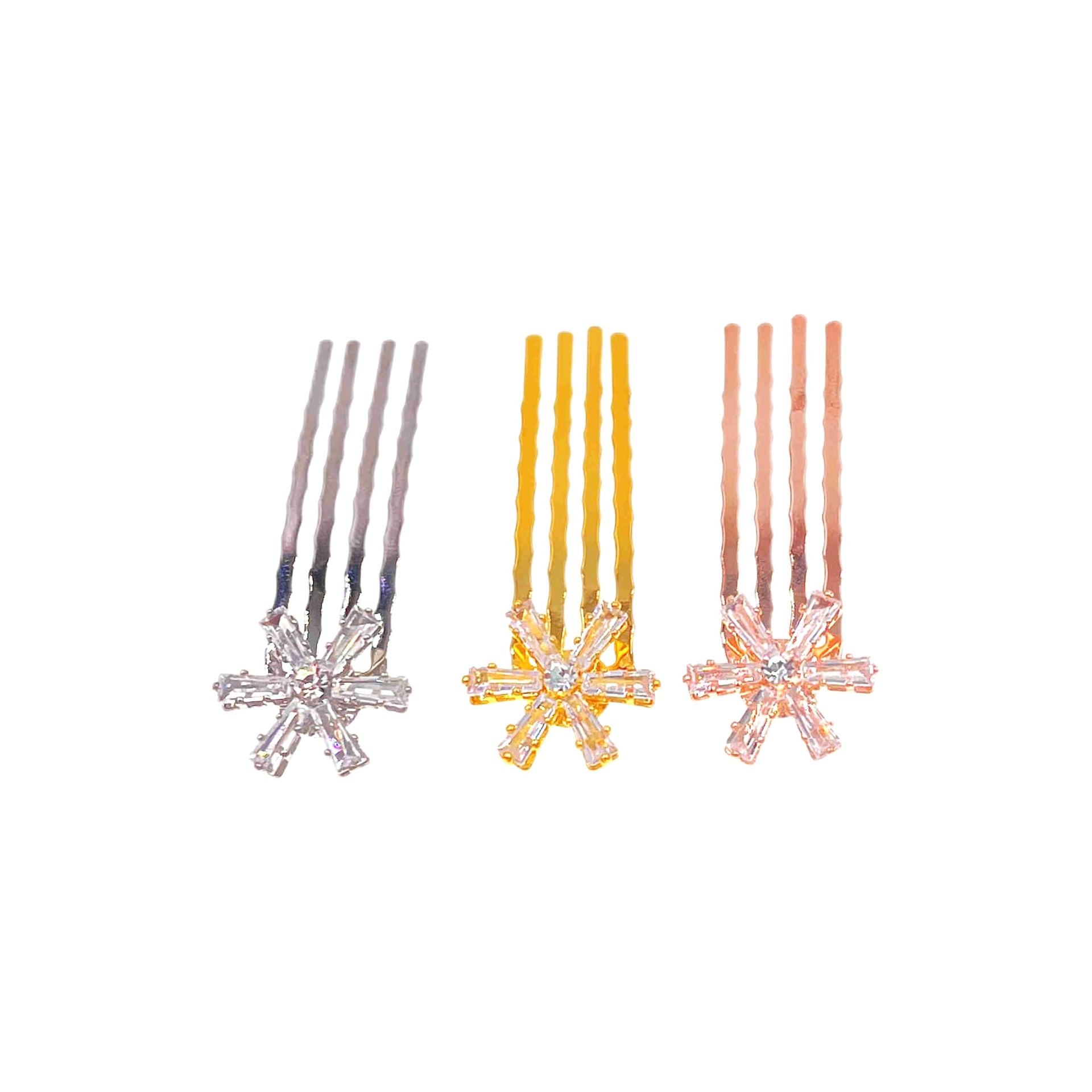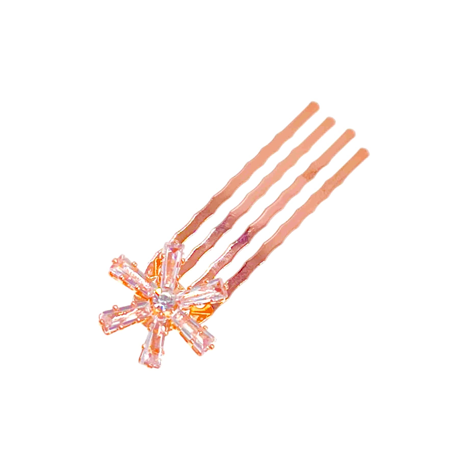 Every piece is carefully hand-set with AAA-grade cubic zirconia, radiating brilliance through either clean modern lines or sculpted floral motifs. Petite yet eye-catching, this comb is made to turn heads — subtly and stylishly.