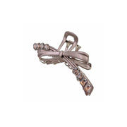 The Shattered Light Hair Claw captures the quiet brilliance of morning light fractured across cool metal. Designed with a silhouette that subtly echoes a slanted bow, this piece blends architectural form with understated femininity.