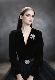 One of MOGHANT’s most refined creations — Celeste Noeud, a haute couture bow brooch inspired by the timeless elegance of French design. Crafted with a sculptural, multi-layered silhouette, the brooch flows like silk in motion — soft, airy, and gracefully dimensional. Minimalist in shape yet maximal in detail, it is a piece that effortlessly transitions from everyday elegance to statement evening glamour. A true collectible for those who seek both craftsmanship and sophistication.