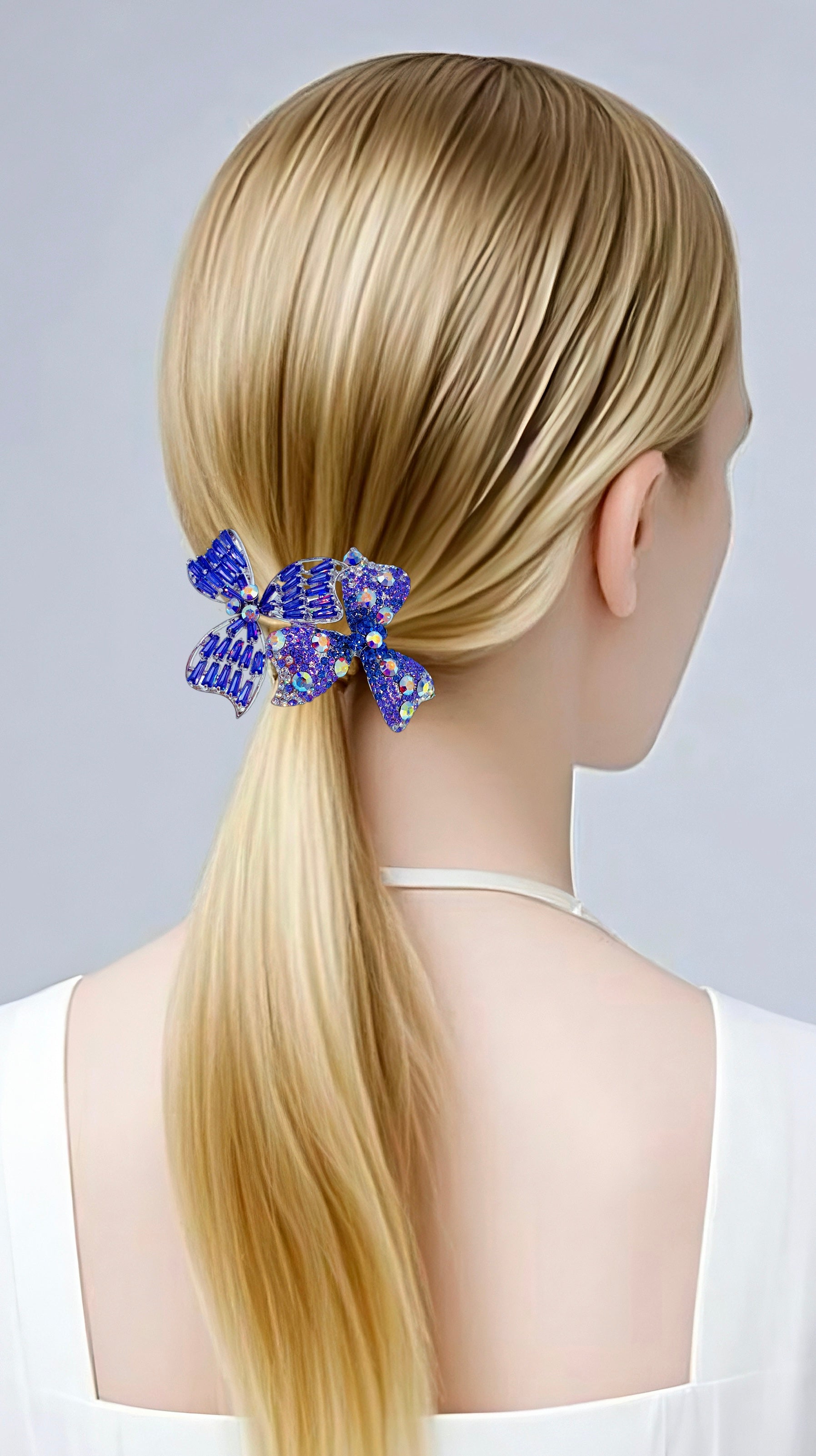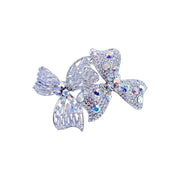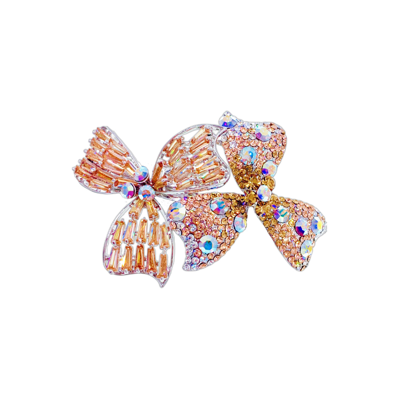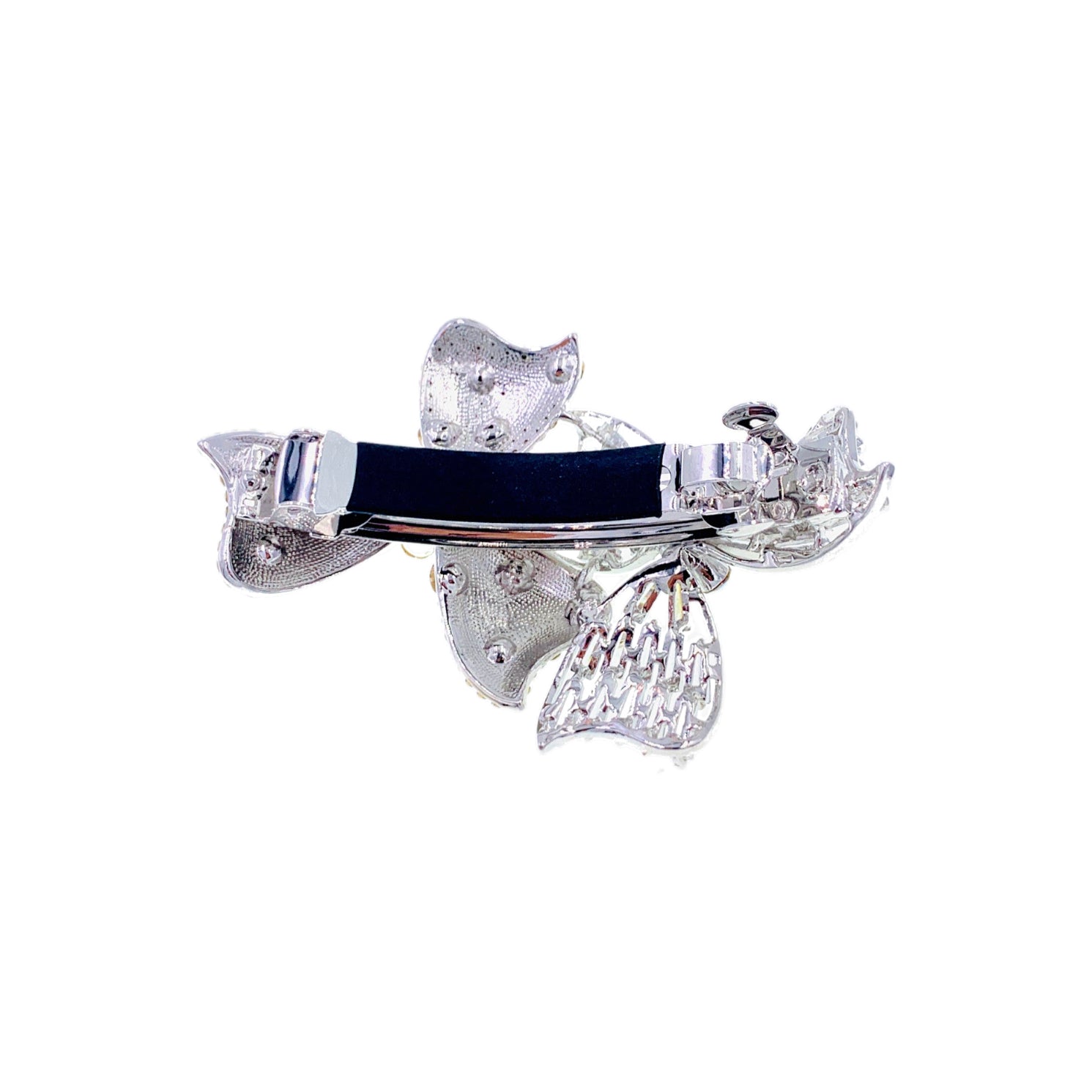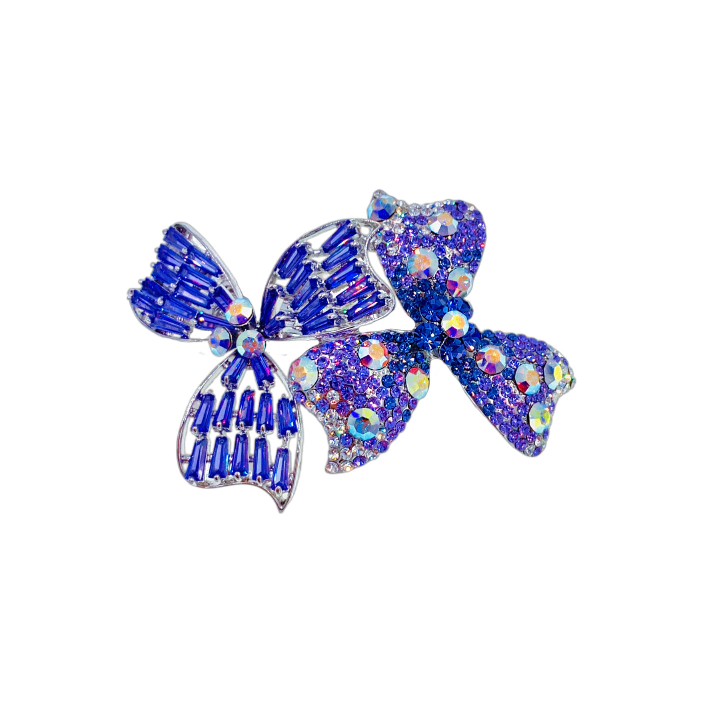 Inspired by a twin-flower design, this barrette features two blossoms that complement each other, like radiant floral shadows dancing through the hair. One flower is encircled with transparent baguette-cut crystals, shimmering with fluid brilliance, while the other is pavé-set with petite Austrian crystals in matching hues, exuding refined sparkle. Together, the twin blooms create rich layers of light and texture, as if two crystalline flowers were gently frozen in your hair, illuminating elegance and romance with every glance.