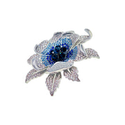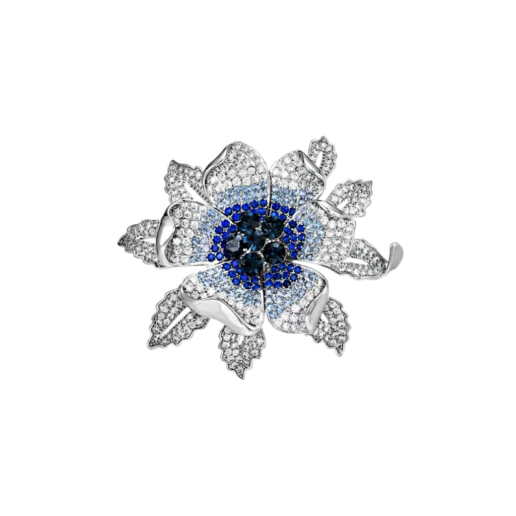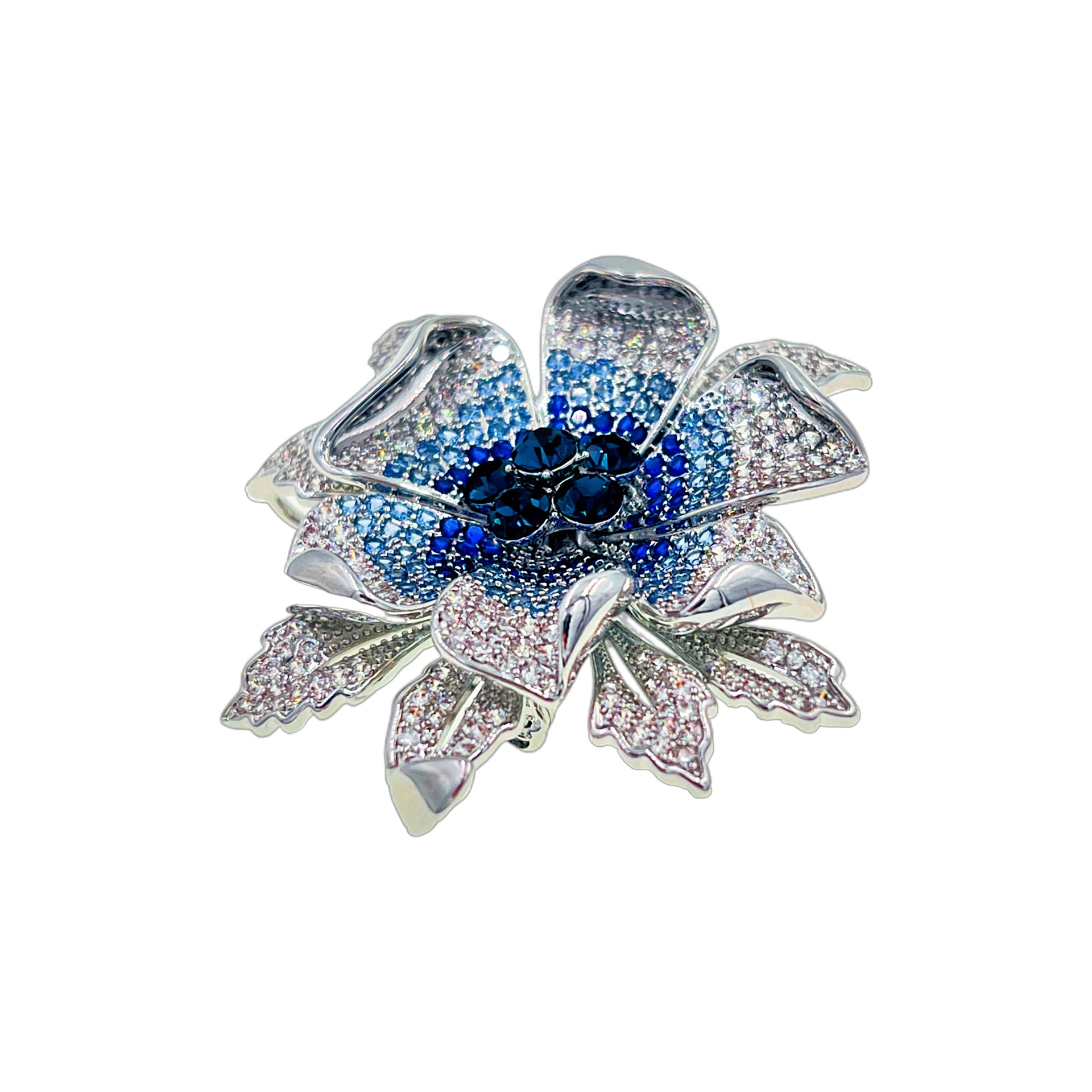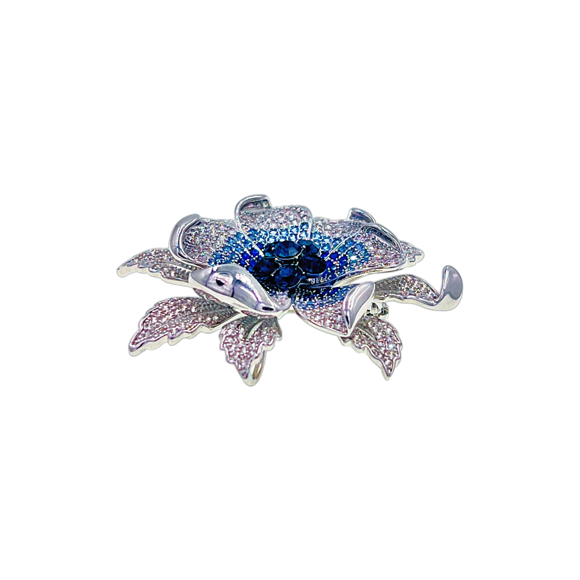 The brooch is bathed in a sophisticated blue gradient, shifting from deep royal sapphire to ethereal sky blue. This gem-inspired color layering evokes dew-kissed petals at dawn—elegant, luminous, and full of poetic depth.
