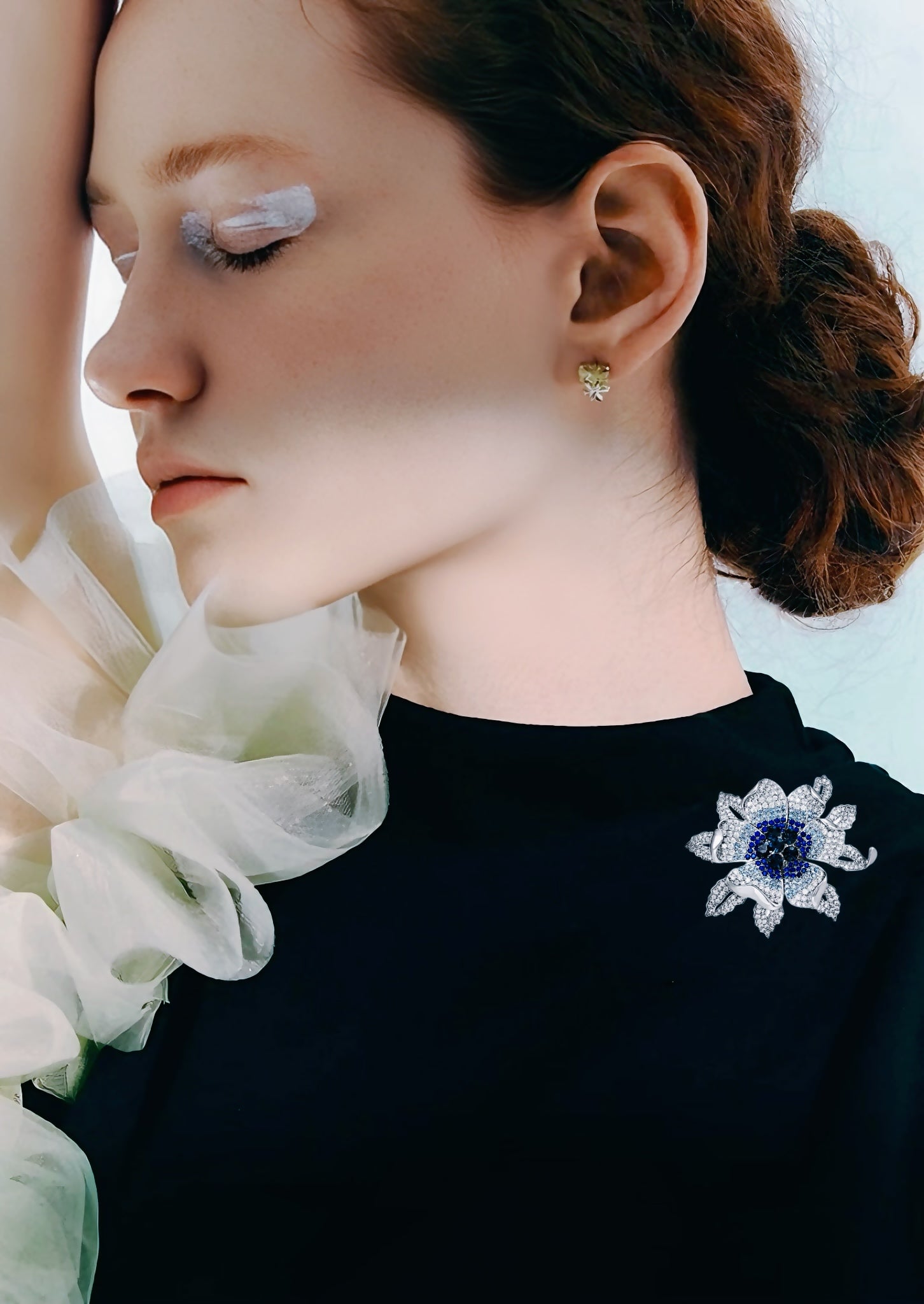 Éclosion Saphir · The Bloom of Sapphire Passionflower Brooch