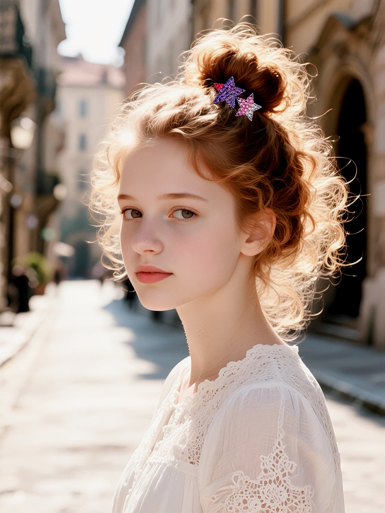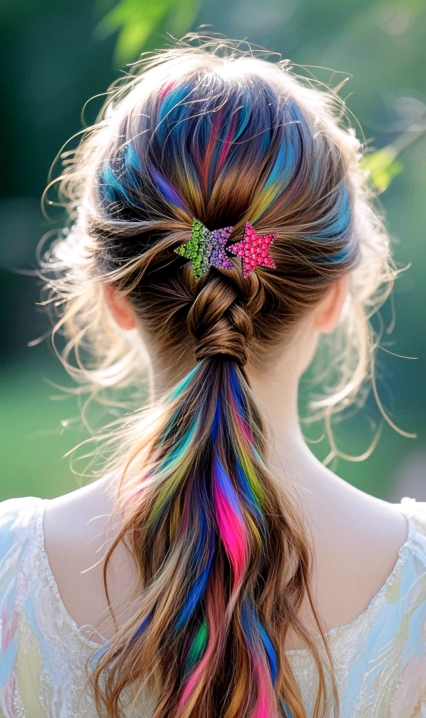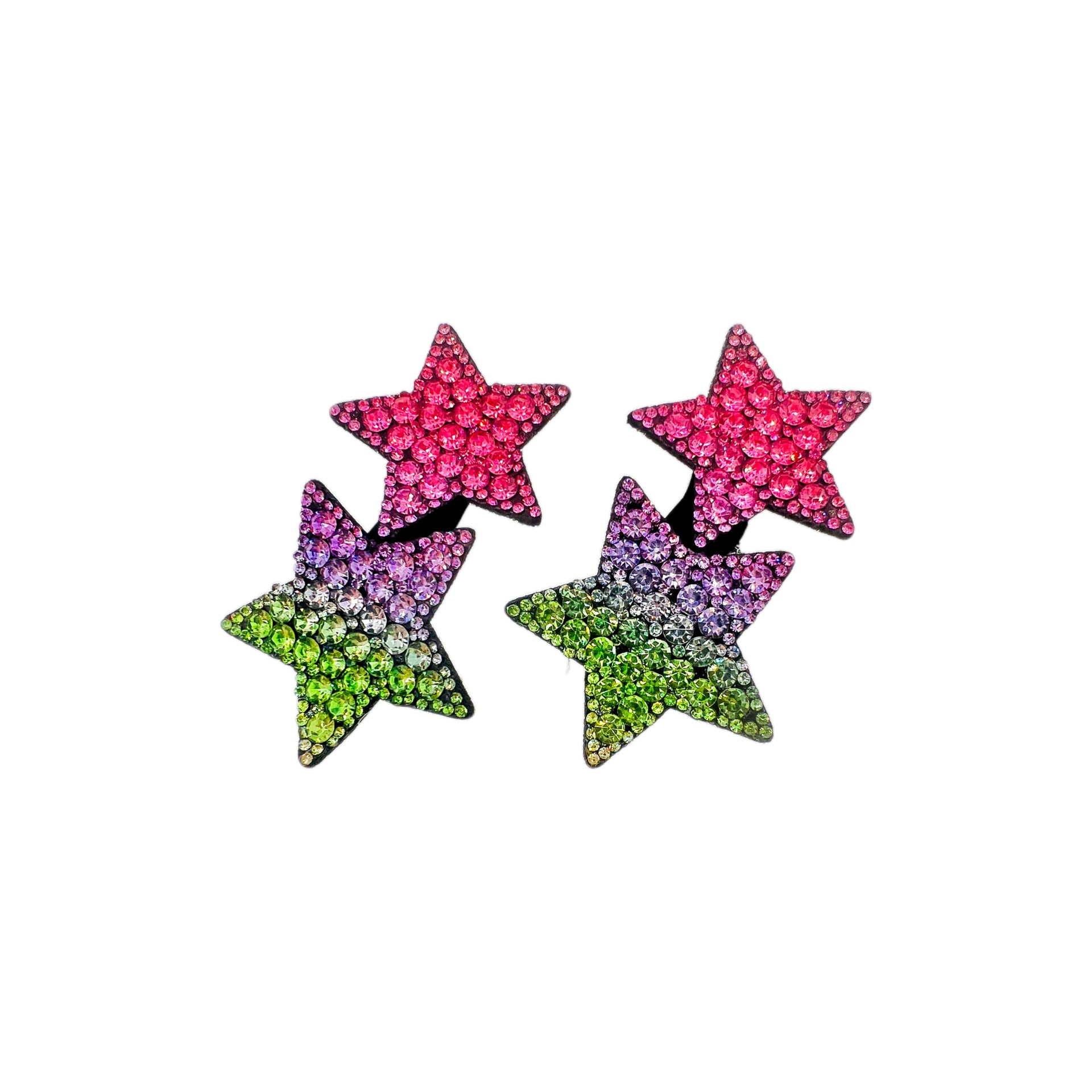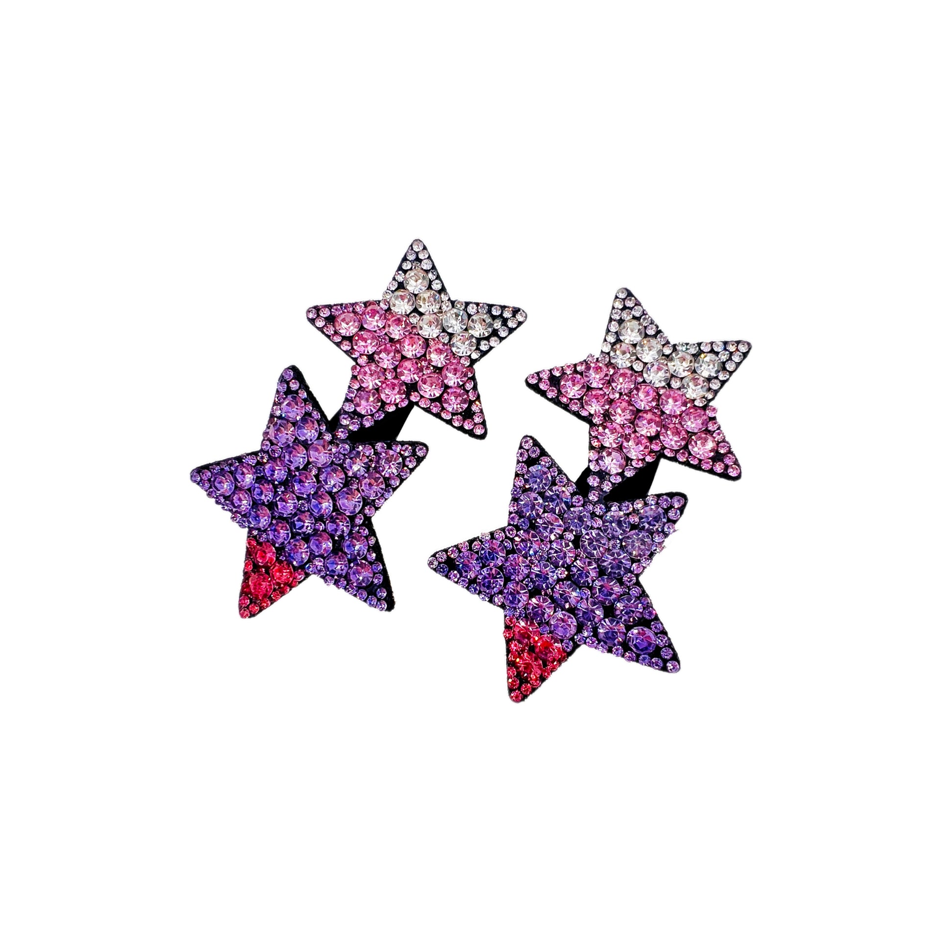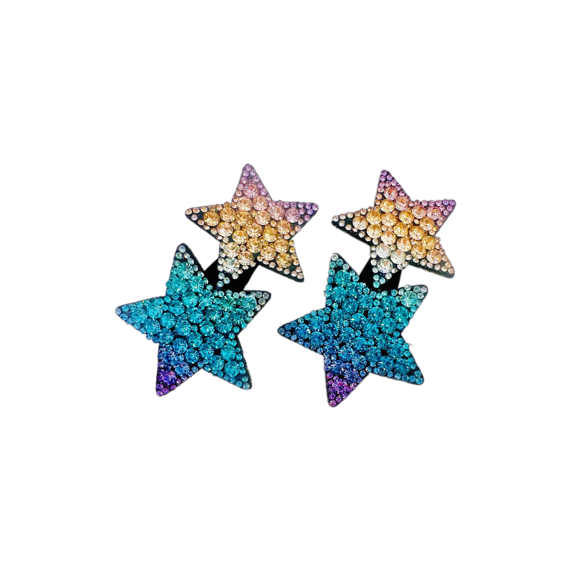 A refined pair of five-pointed star clips, accented with gradient rhinestone crystals in varying sizes. The layered sparkle creates the illusion of a starry sky, bringing brilliance and elegance to any hairstyle.