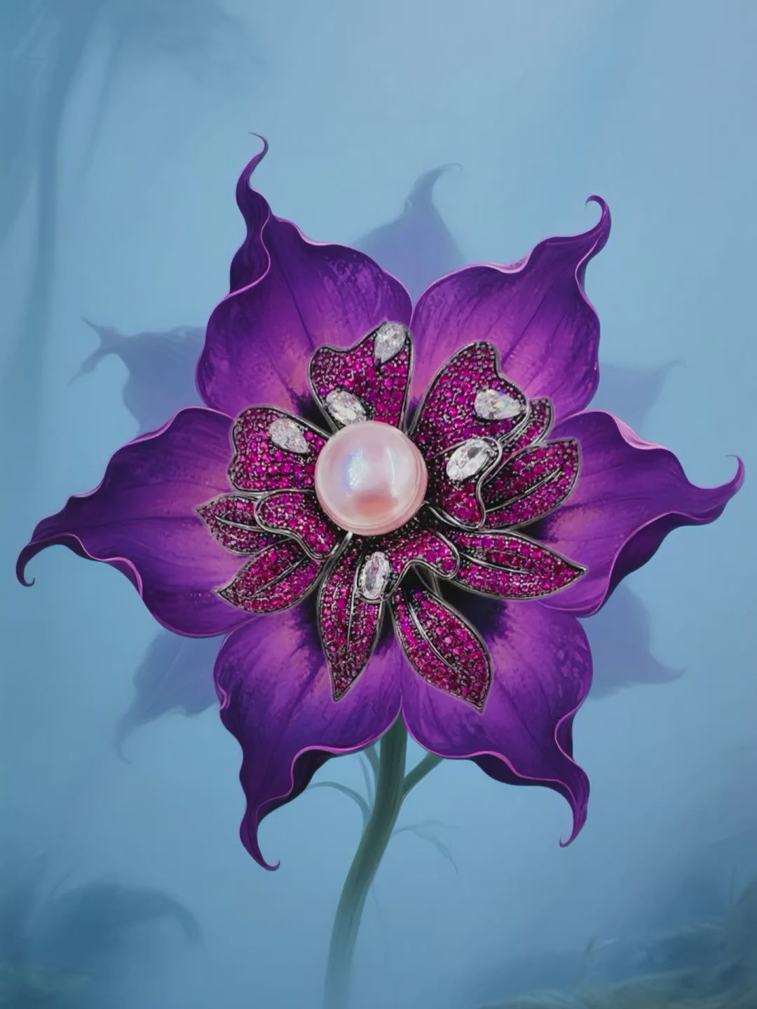 • Dark Magenta Mandala Haute 3D Full-Pavé Couture Brooch Pin Flower