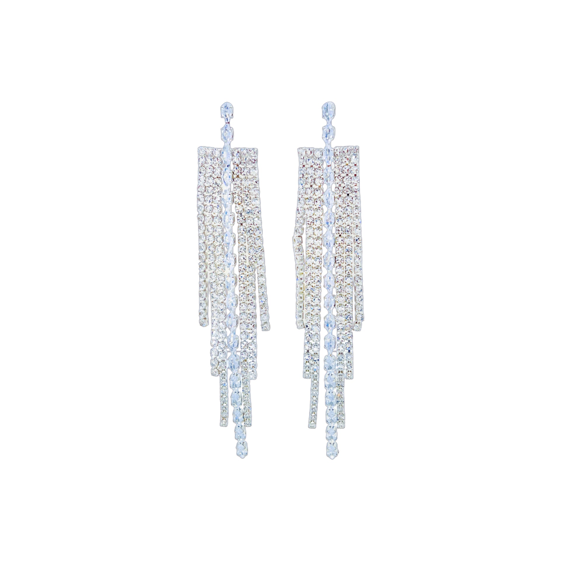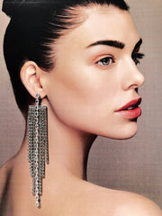 Minimalist waterfall-inspired tassels flow in sleek lines, accented by a singular asymmetrical shimmer.