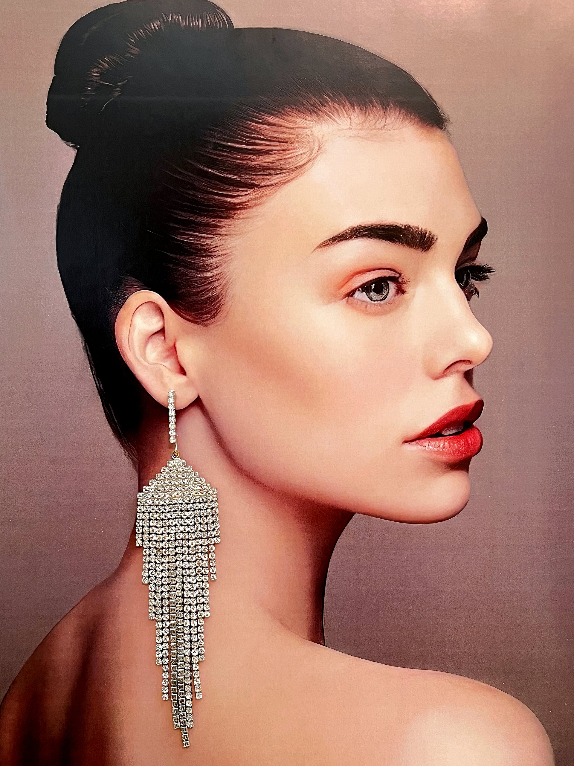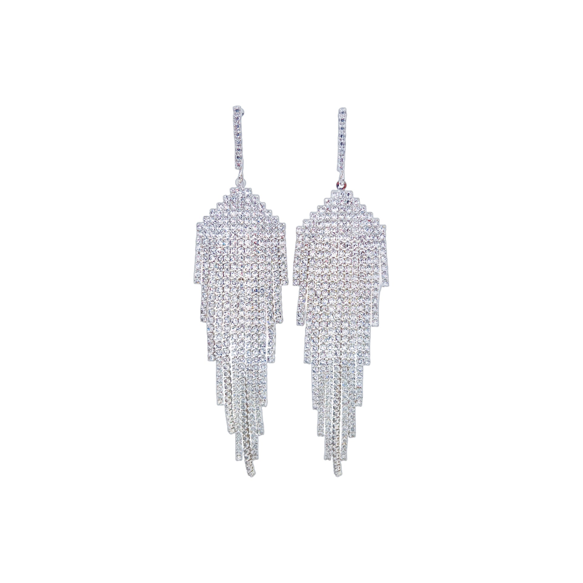 A dazzling cascade of silver brilliance. Featuring a three-dimensional, full-pavé tassel design, these earrings shimmer with every movement—radiating elegance and fluid light.