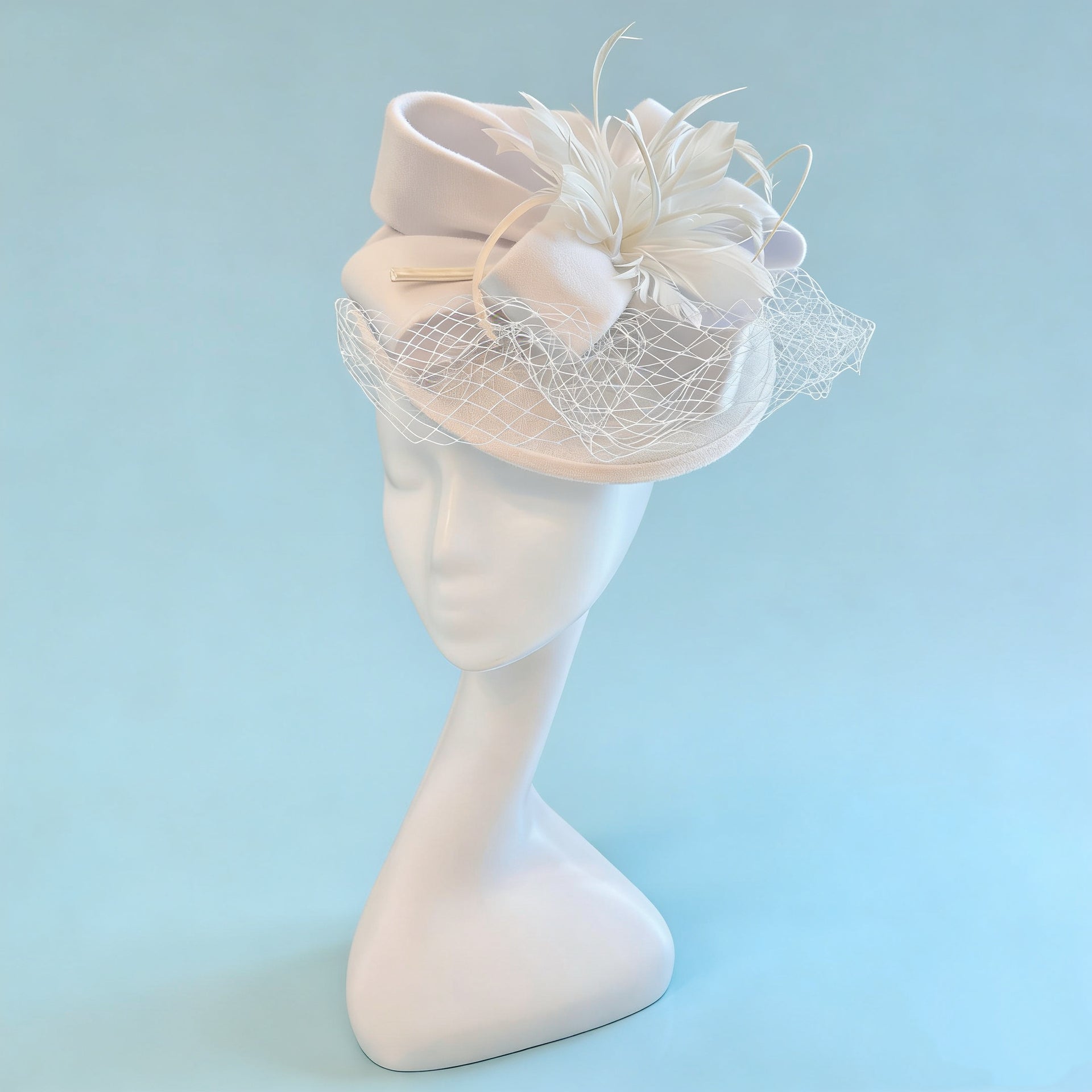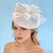 The base features a faux linen mesh fascinator foundation that is lightweight yet structured, creating a naturally soft and balanced silhouette.