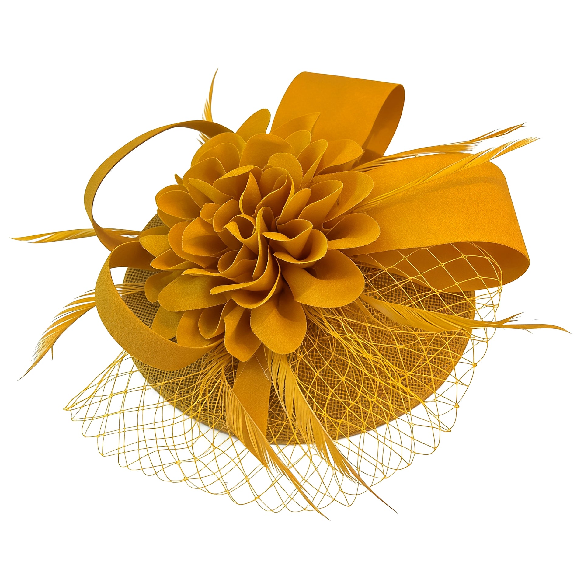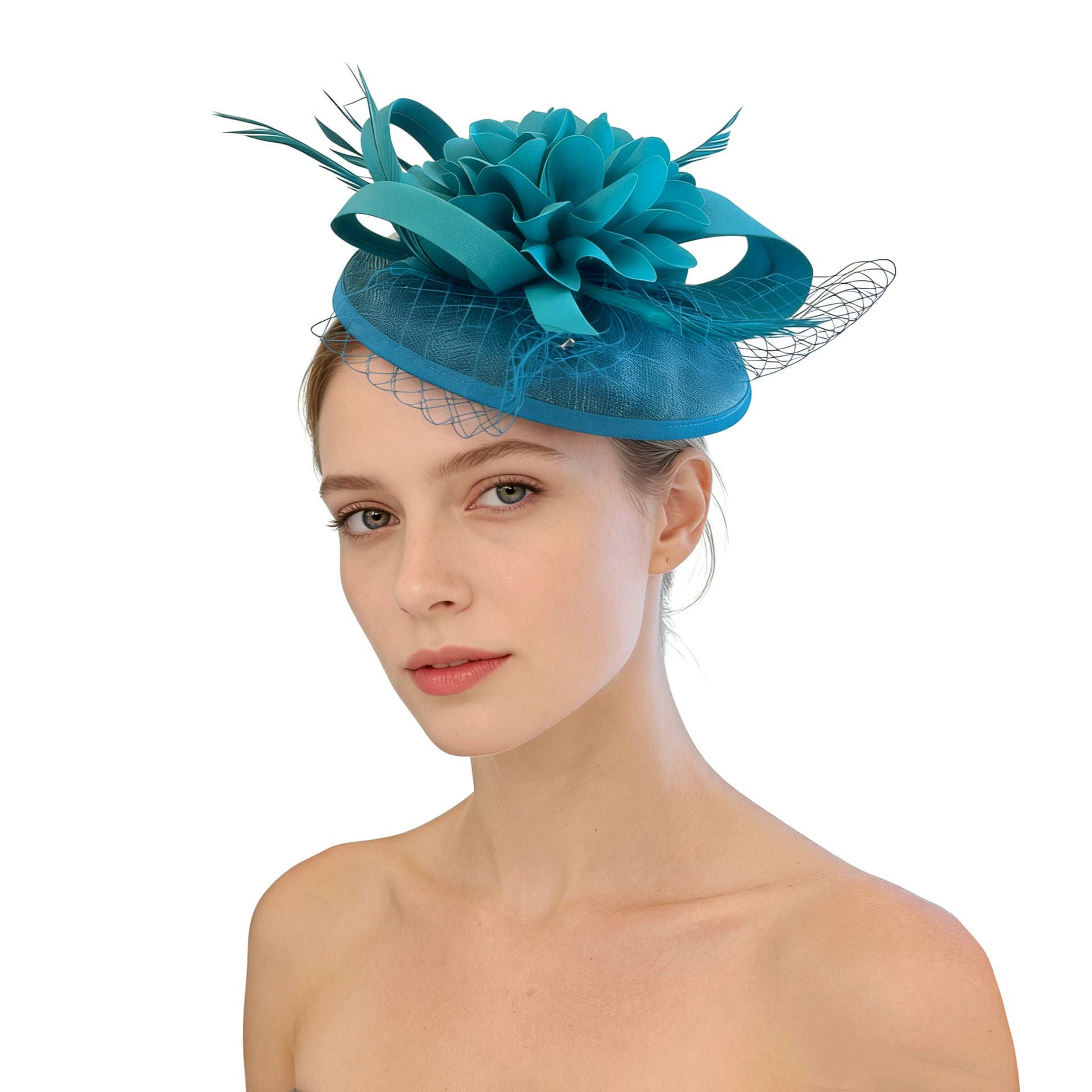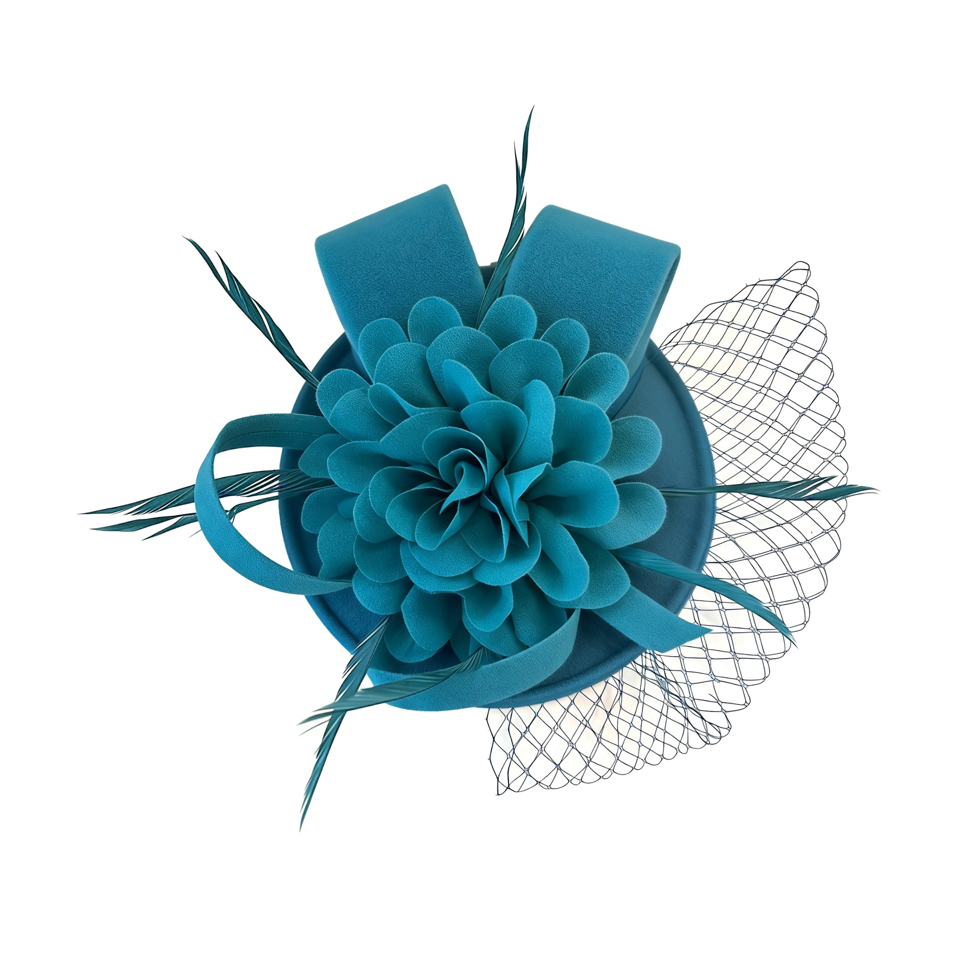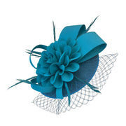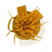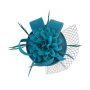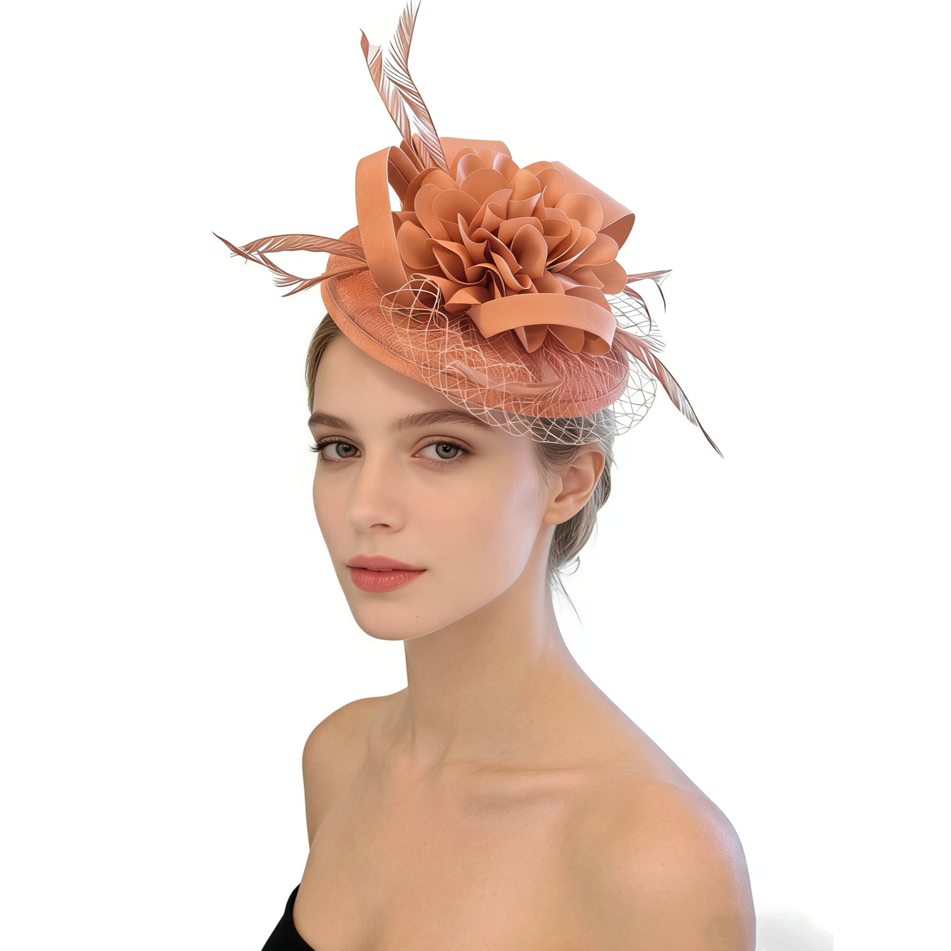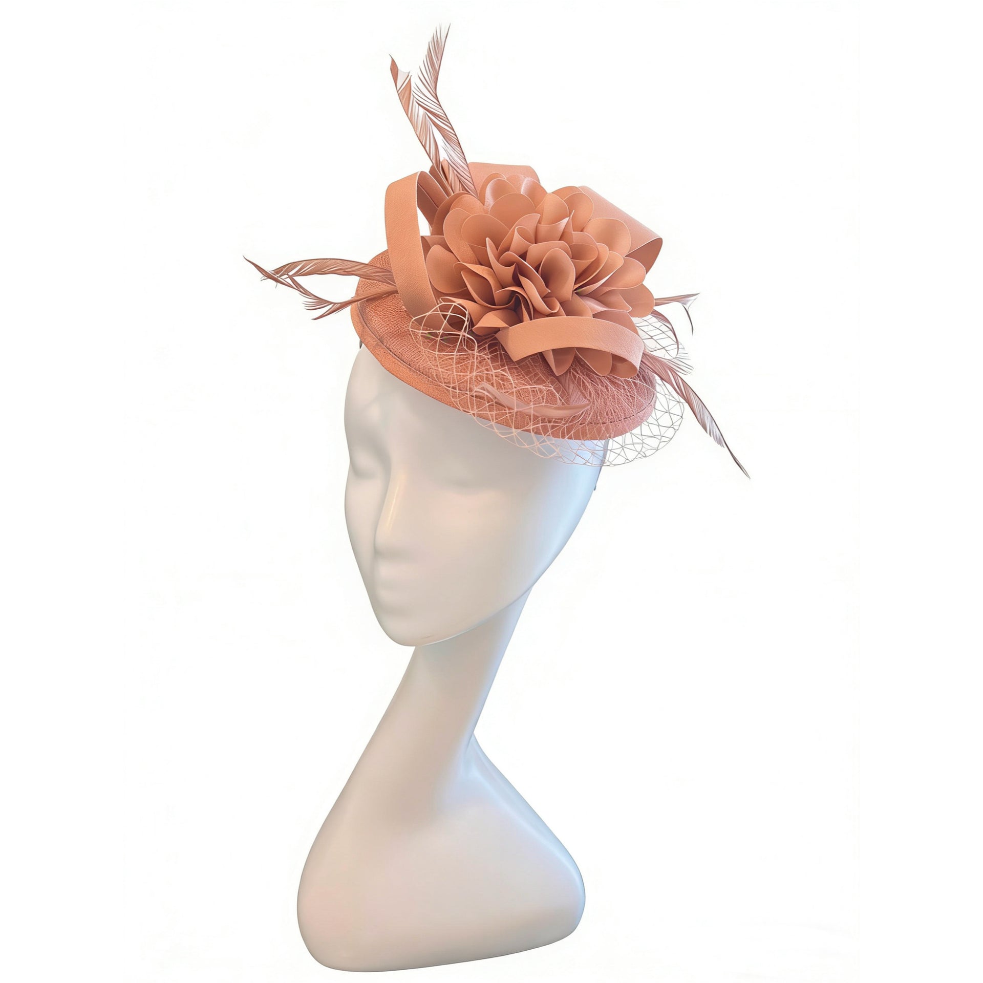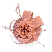 Crafted on a lightweight linen-textured base, this fascinator offers gentle structure while maintaining an airy, refined feel. The top is adorned with a dimensional silk flower, its delicately layered petals unfolding with soft elegance. Light, airy feathers add subtle movement and a touch of ethereal charm.