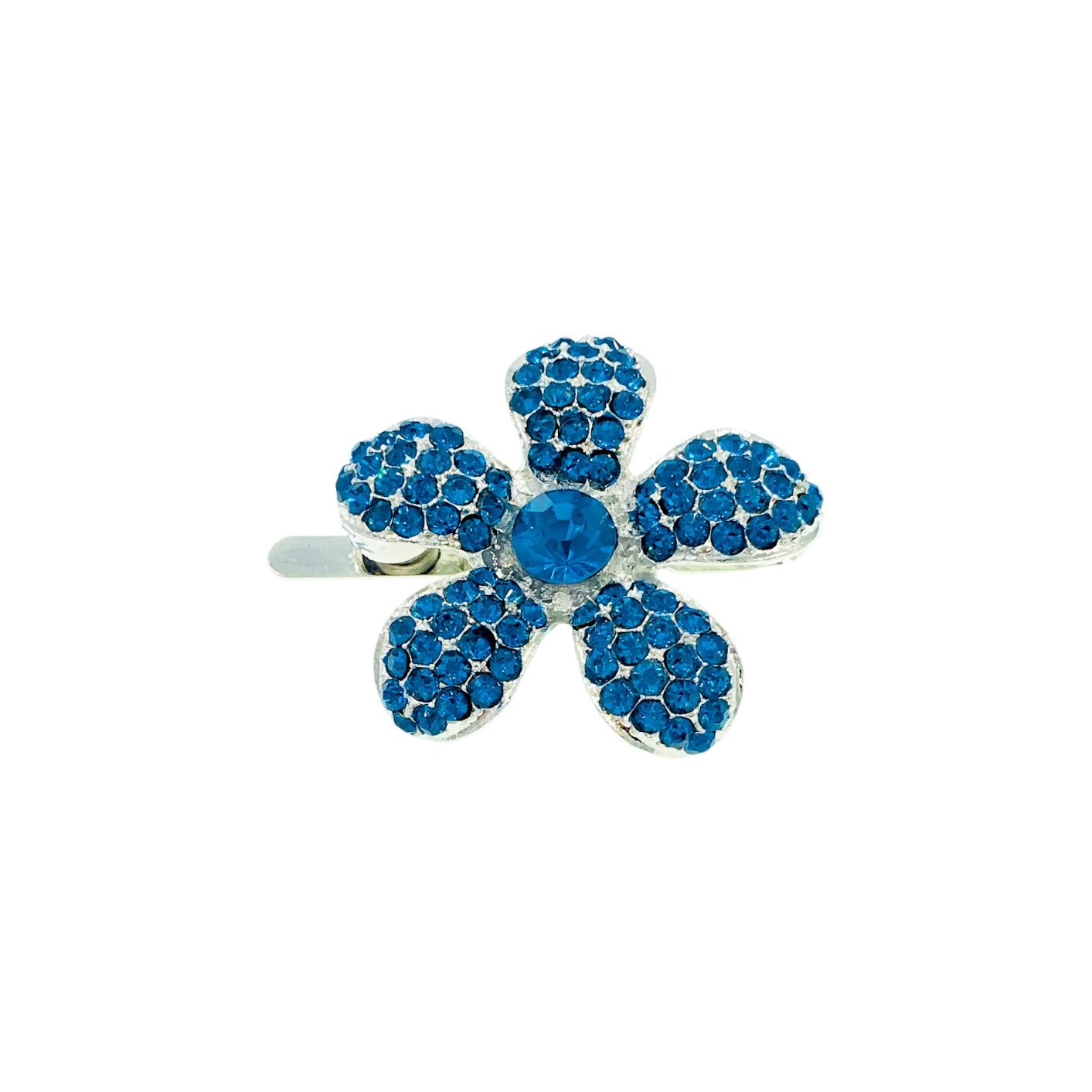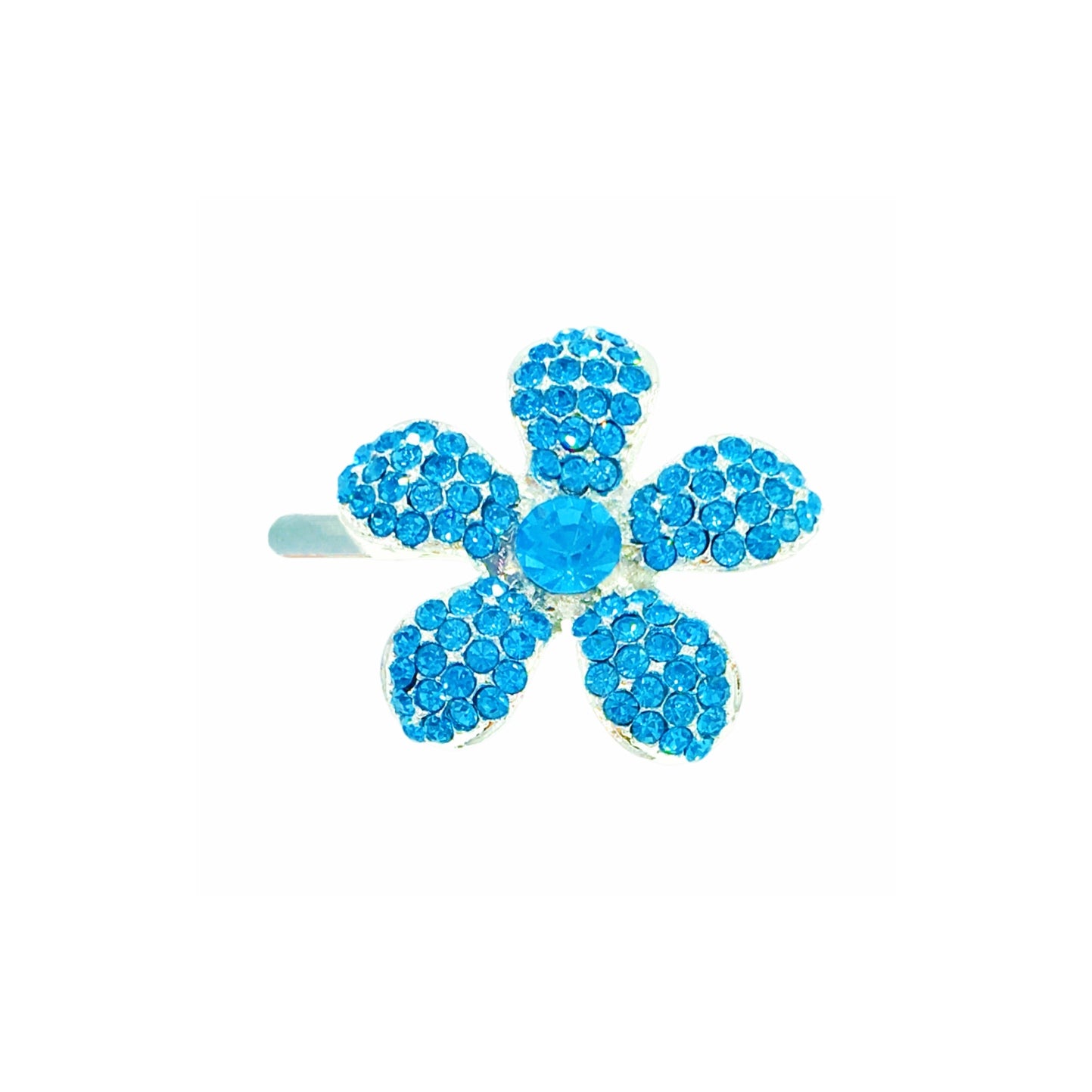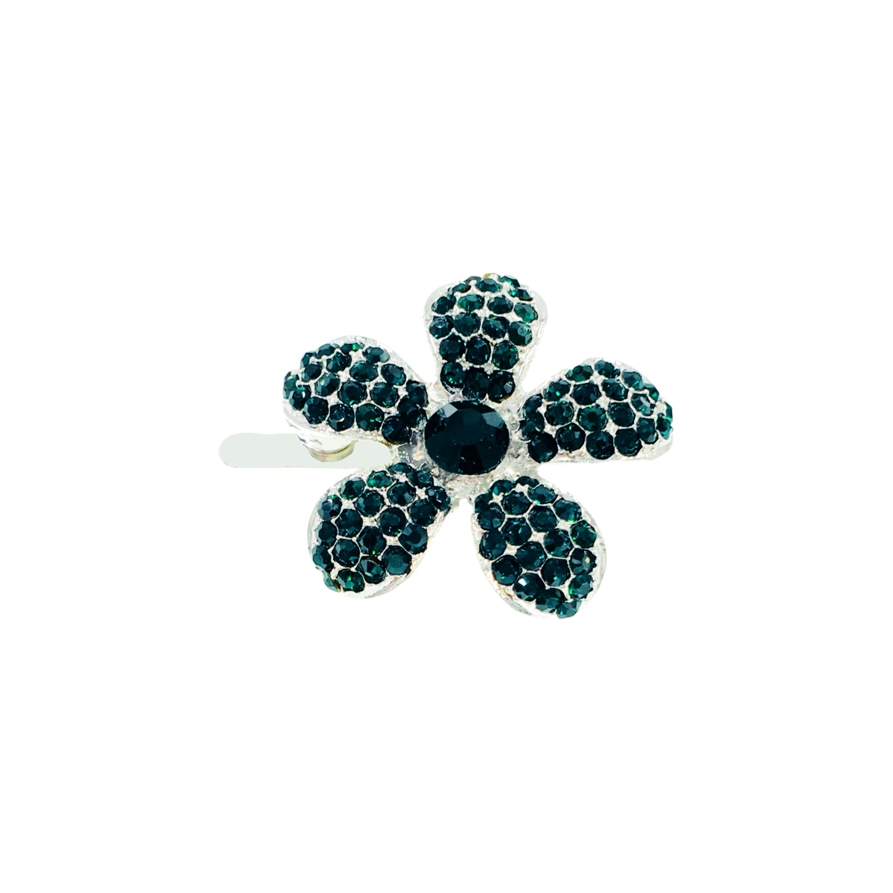 Shaped like a five-petal periwinkle bloom, each piece is meticulously handcrafted and set with high-sparkle rhinestones. The center stone complements the surrounding petals, creating a radiant yet refined finish.