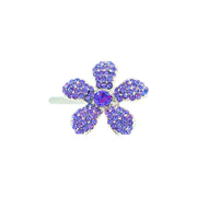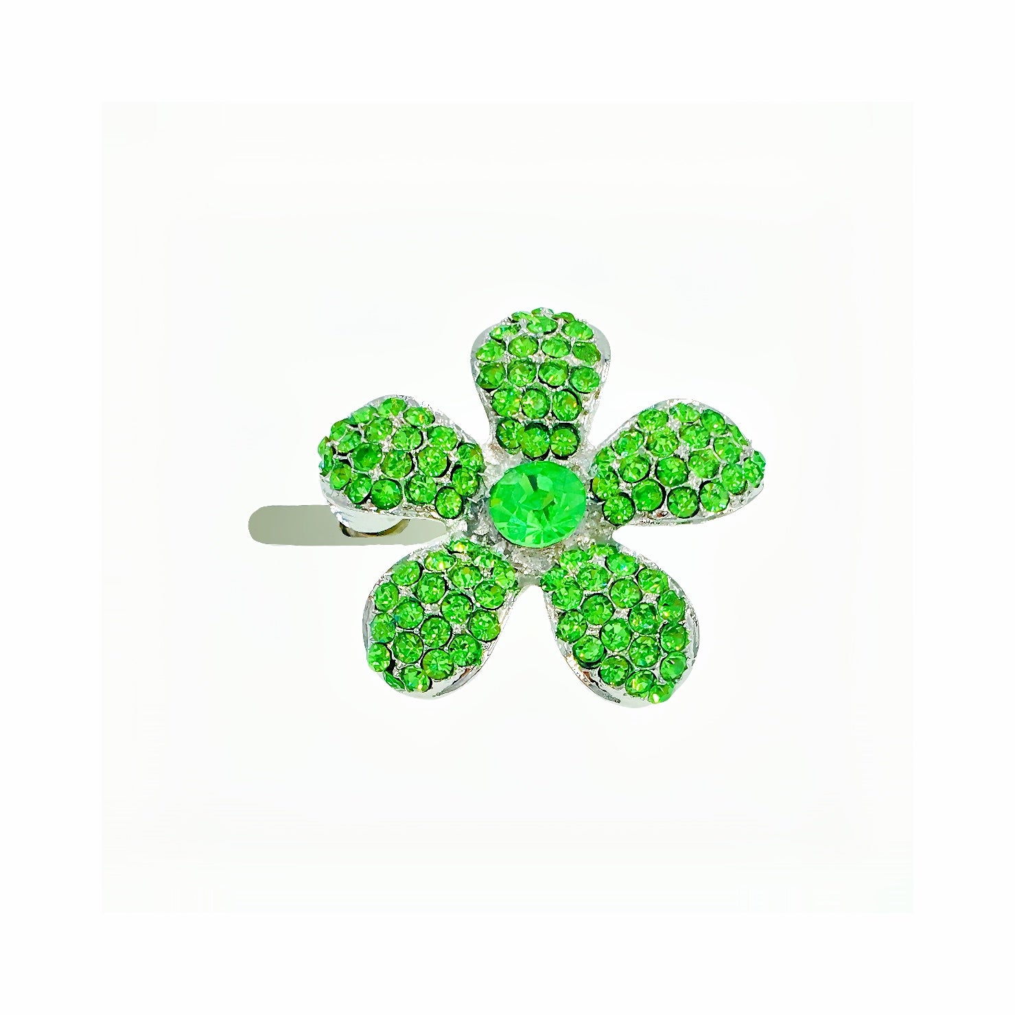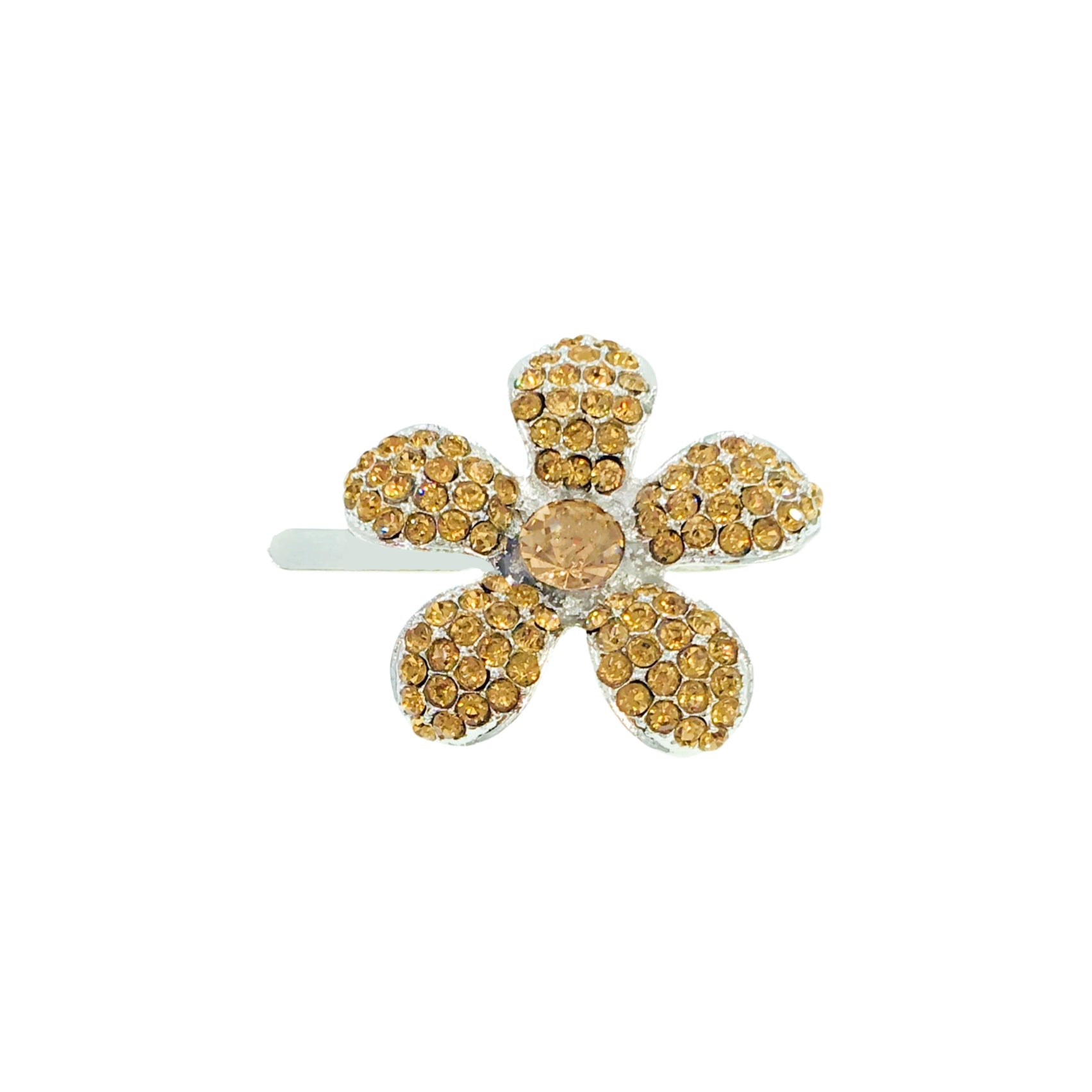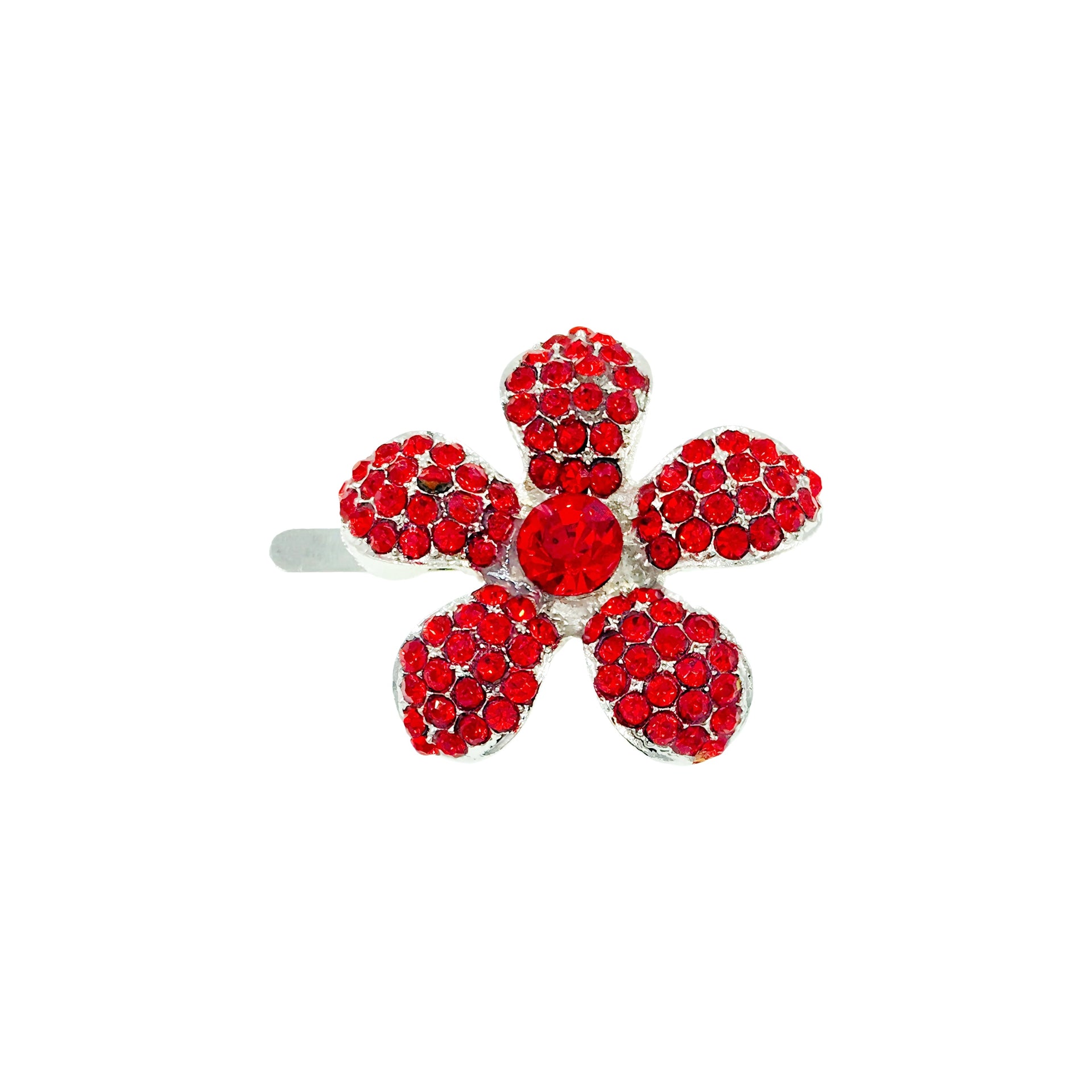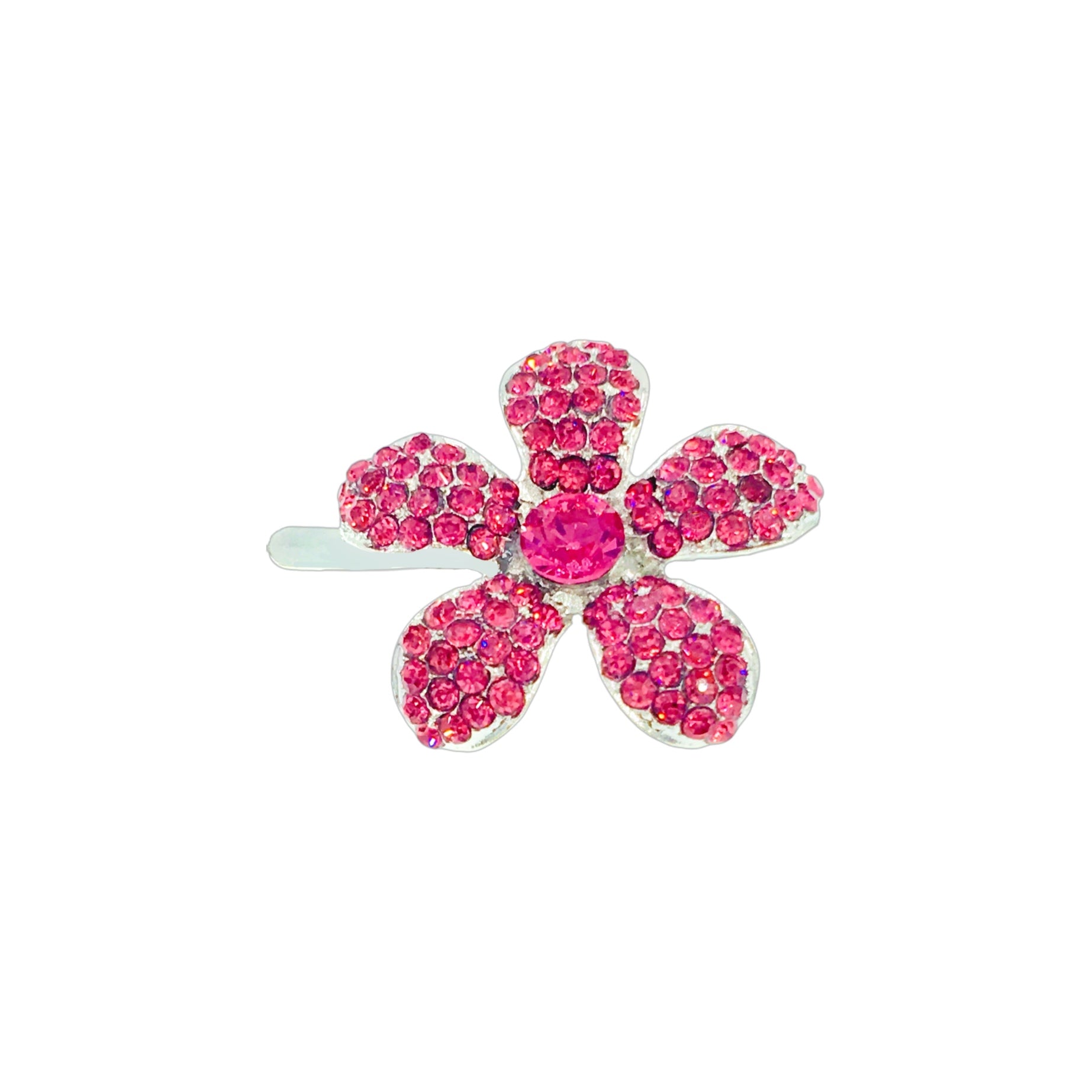 Shaped like a five-petal periwinkle bloom, each piece is meticulously handcrafted and set with high-sparkle rhinestones. The center stone complements the surrounding petals, creating a radiant yet refined finish.
