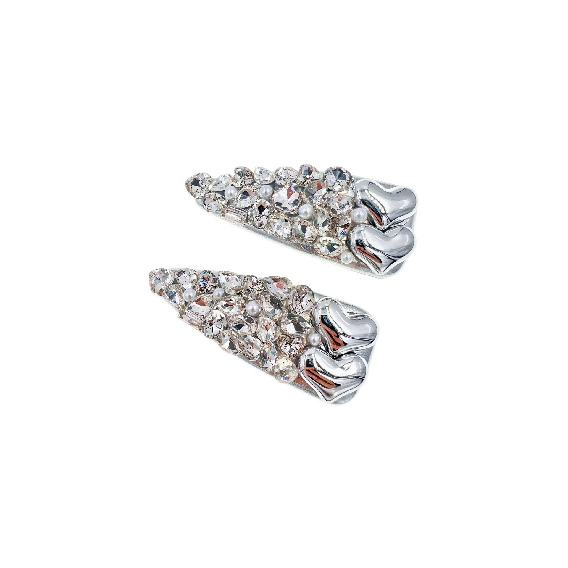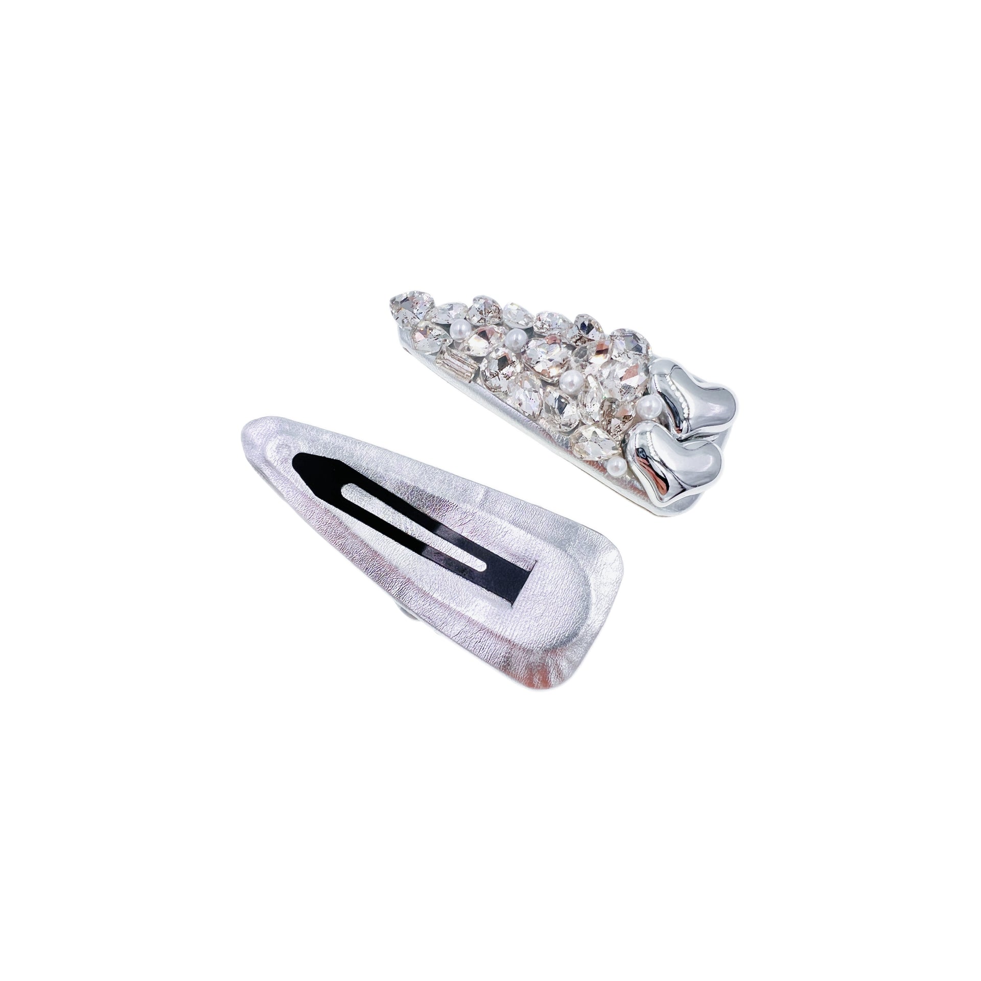 The Éclat d’Amour handmade BB clip set is a delicate blend of romantic charm and fine craftsmanship. Built on a soft, flexible U-shaped base, each clip is adorned with a thoughtful mix of pearls, heart-shaped shell accents, and glistening Czech crystals in irregular cuts—every element hand-set to create a multidimensional sparkle. Available in three dreamy colorways to suit your mood and style: