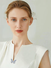 Each wing is encrusted with dozens of finely cut cubic zirconia, meticulously handset using micro-pavé craftsmanship. The shimmering stones reflect light like dewdrops on morning wings, creating a dazzling yet refined brilliance.