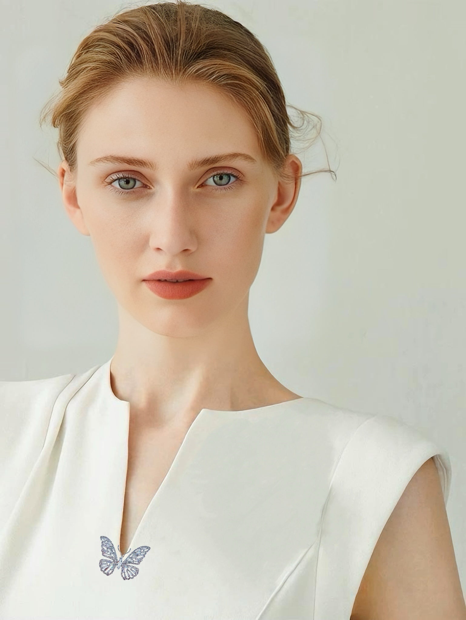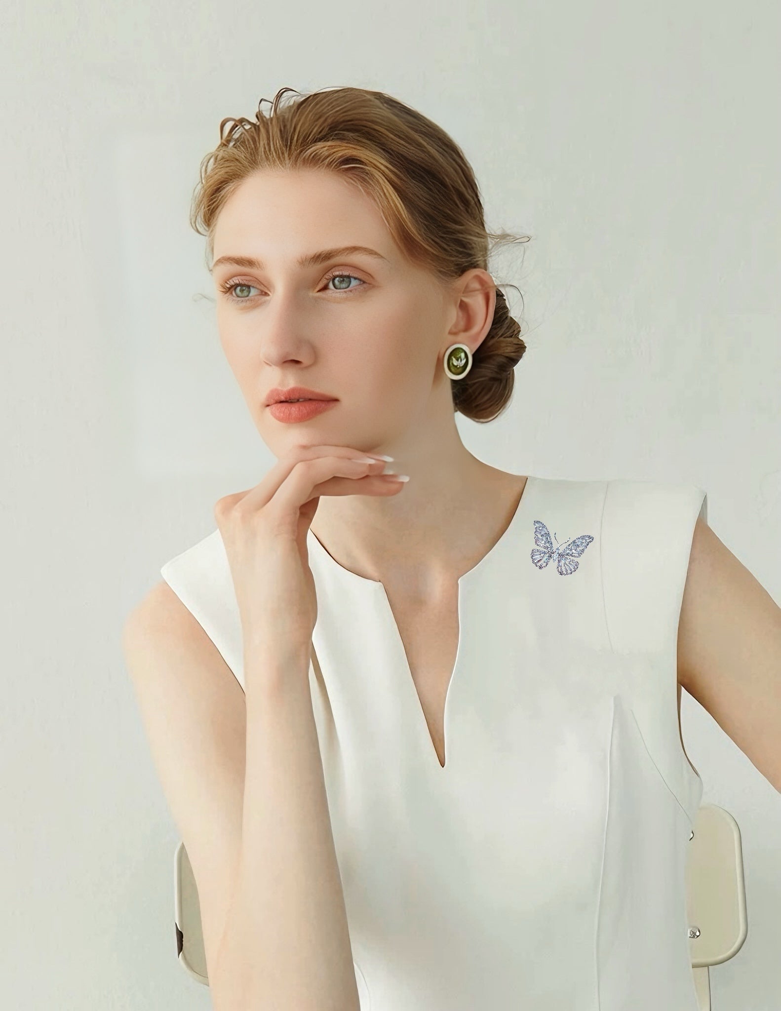 A butterfly in silver light—gracefully radiant, exquisitely refined.
