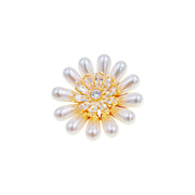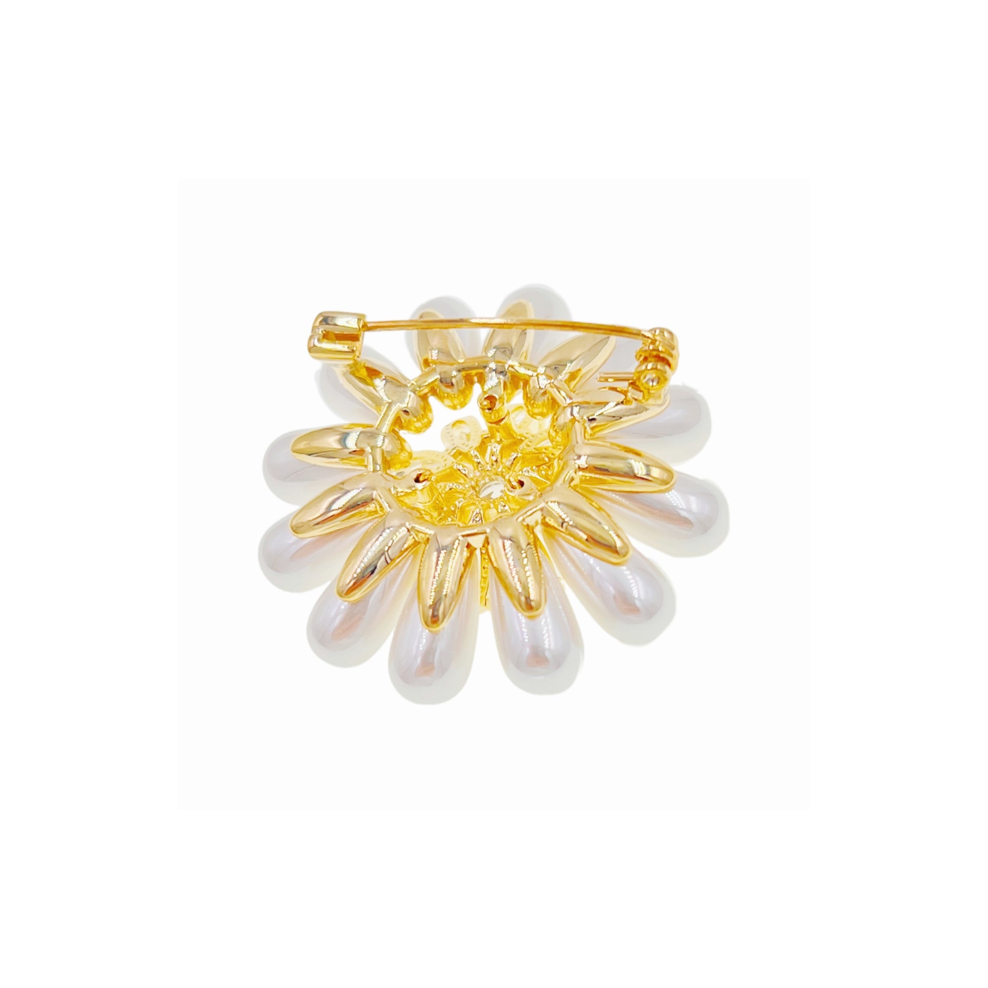 Inspired by moonlit blossoms, this brooch features a floral design with oval-shaped faux pearls radiating outward like petals gently unfurling in the night.