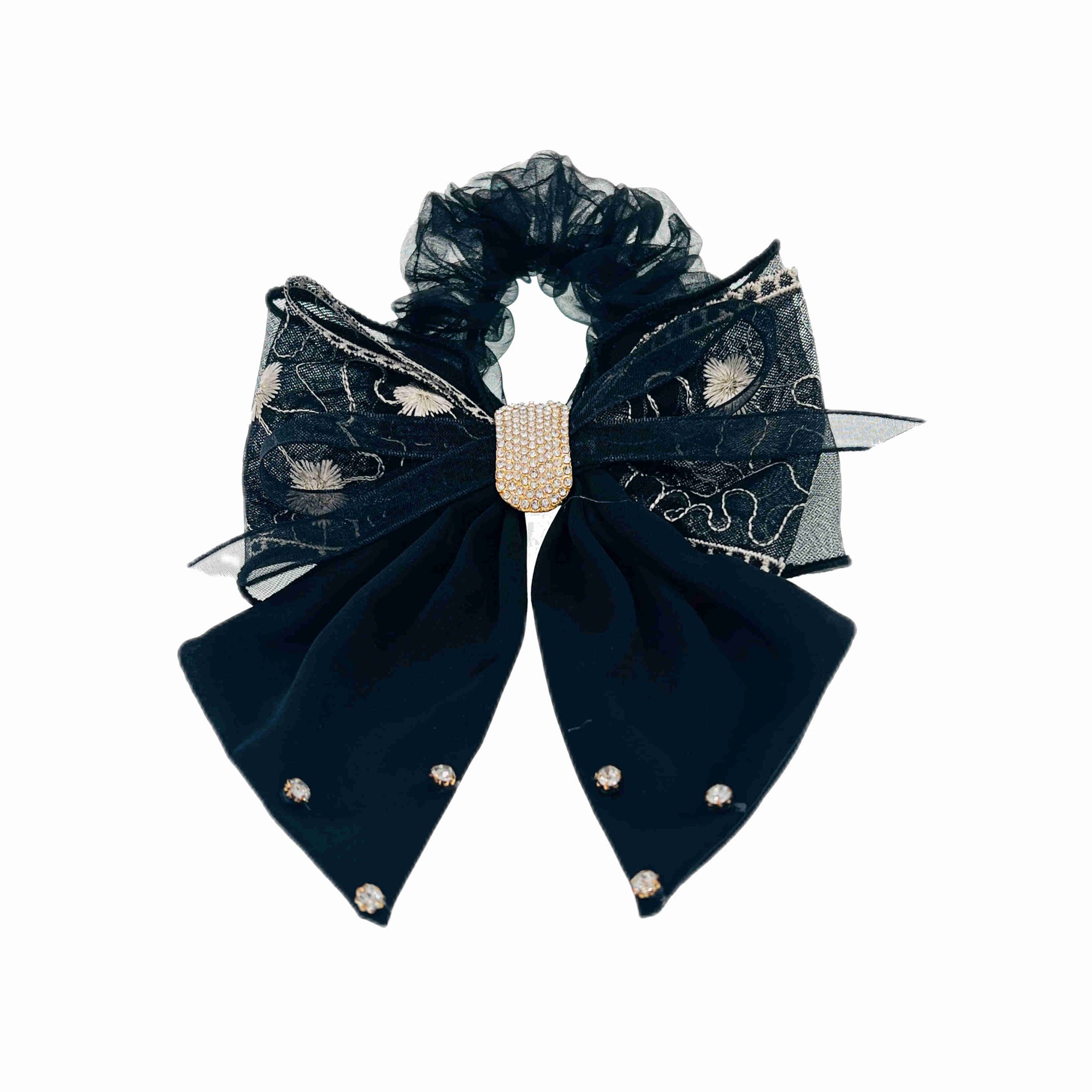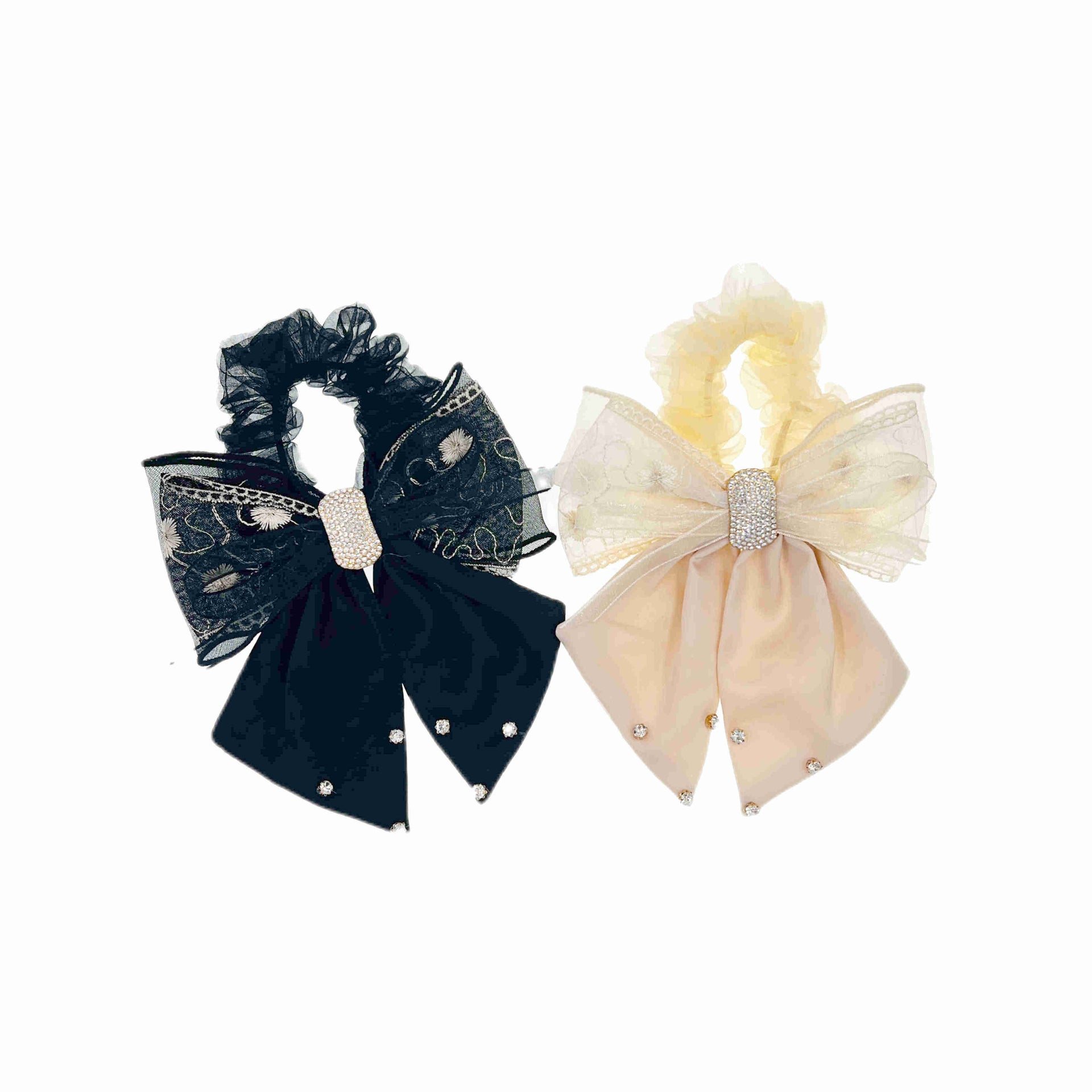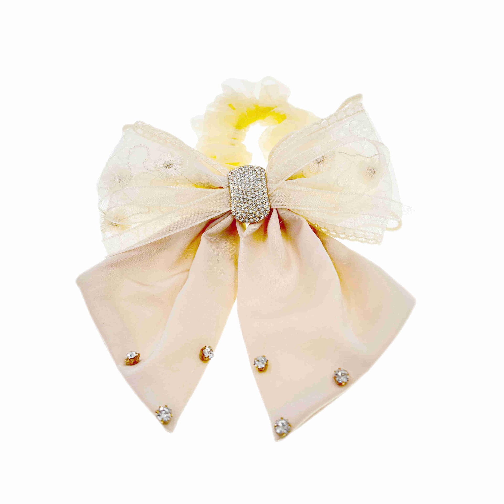Suzette Bouchard Handmade Fabric Bow Scrunchie Ponytail Holder Hair Rope Tie Austrian Crystal E14