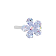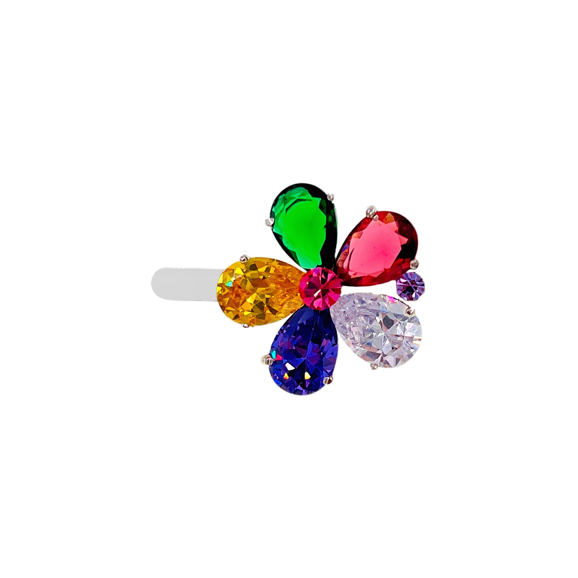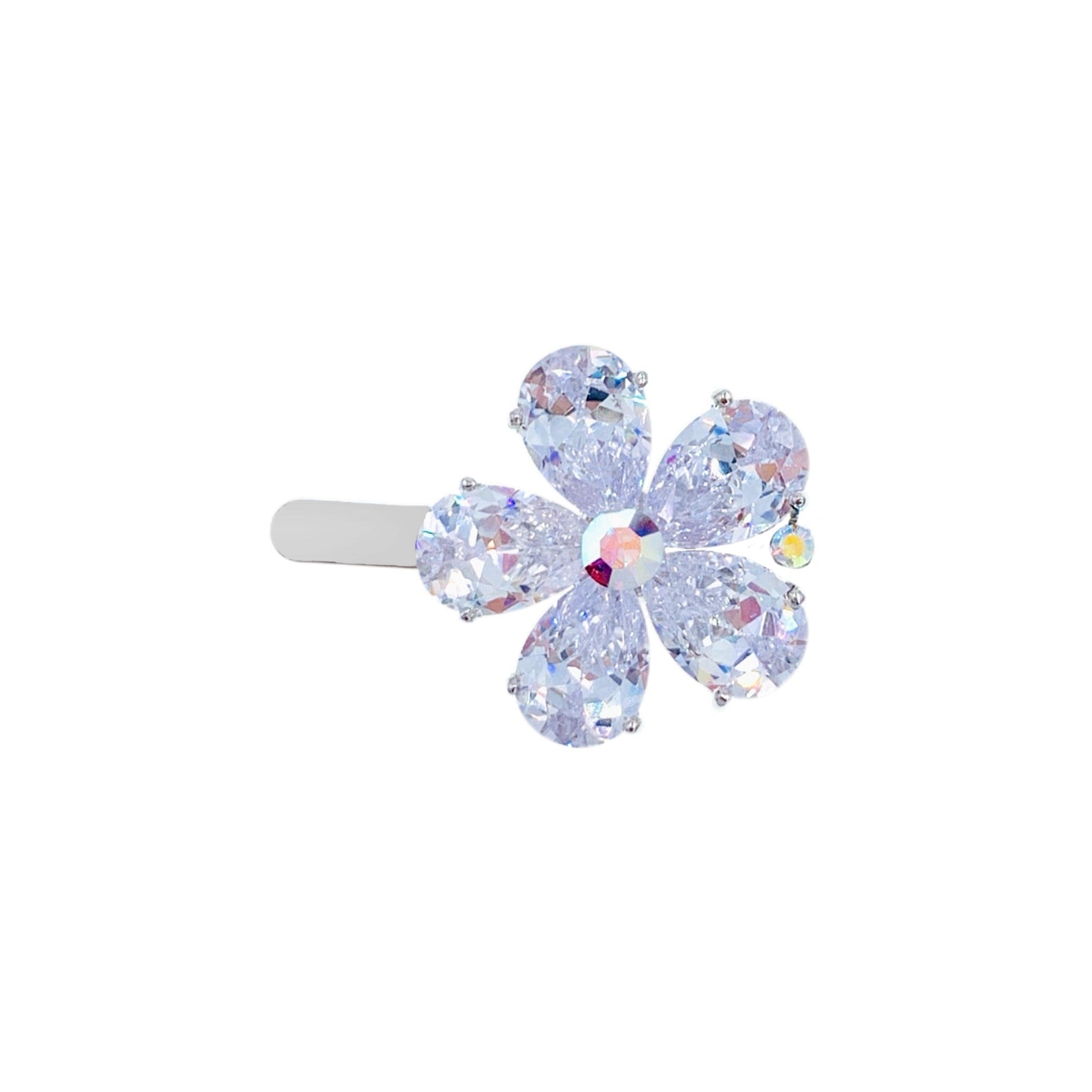 Five large 5A-grade teardrop-shaped cubic zirconia form the petals, while a central Czech crystal in matching or iridescent tones glimmers like morning dew — quiet, radiant, unforgettable.