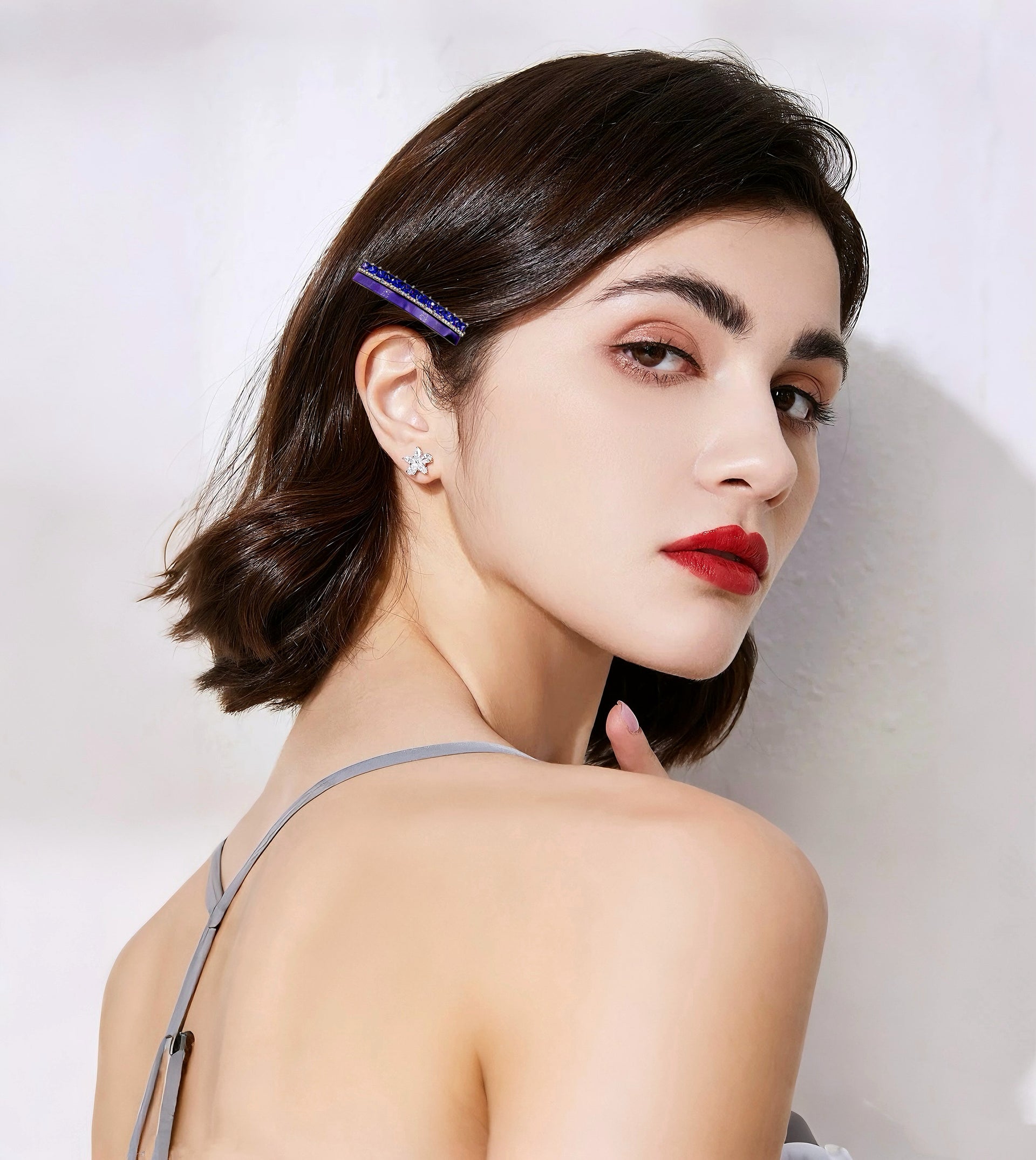 Crafted from Cellulose Acetate sourced from renowned French ateliers and adorned with hand-set 5A cubic zirconia, it brings a measured glow to minimalist design.