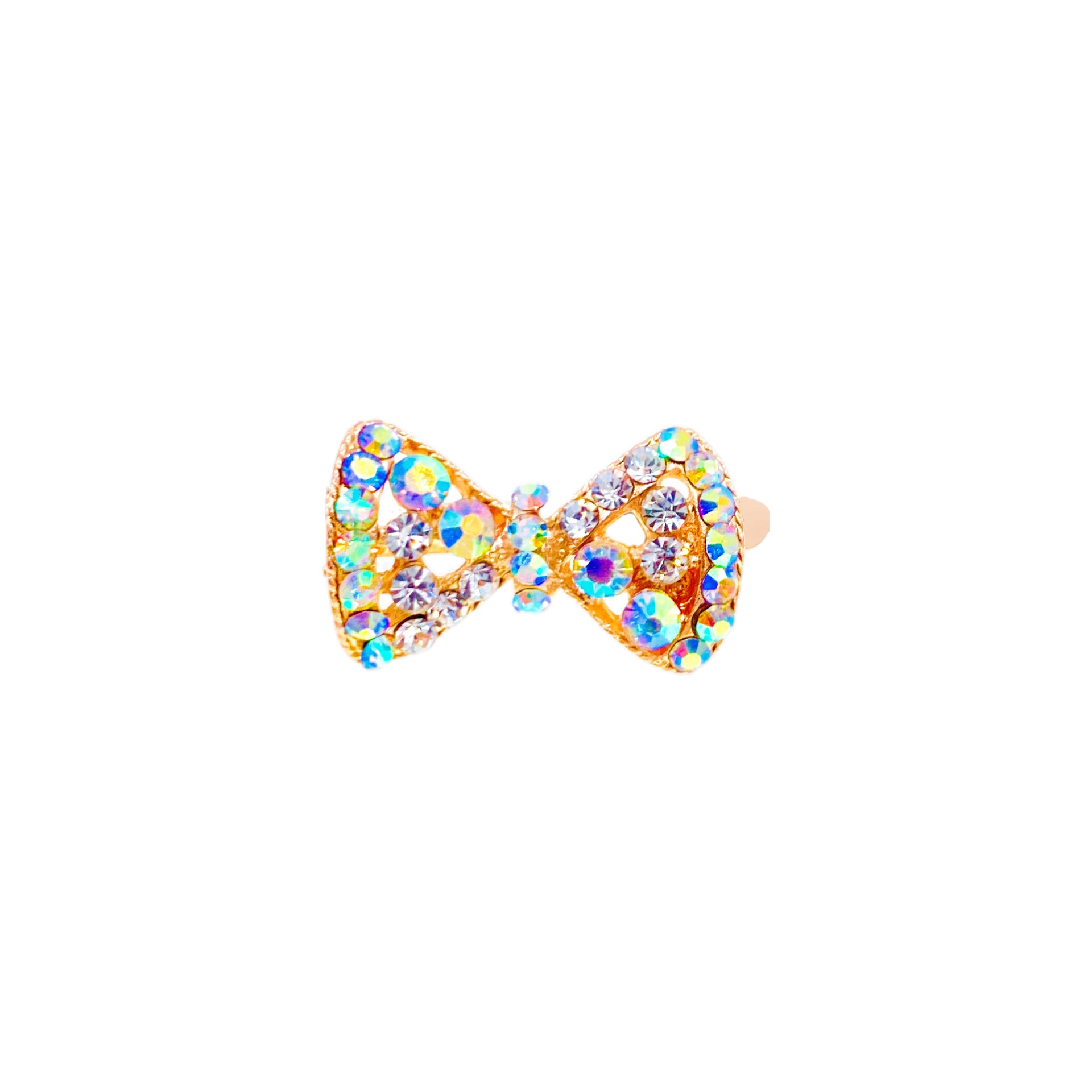 - Minimalist bow silhouette with a dreamy openwork structure and hand-set rhinestones
