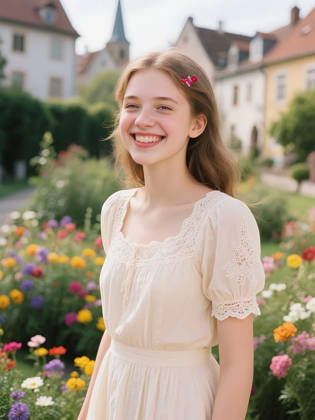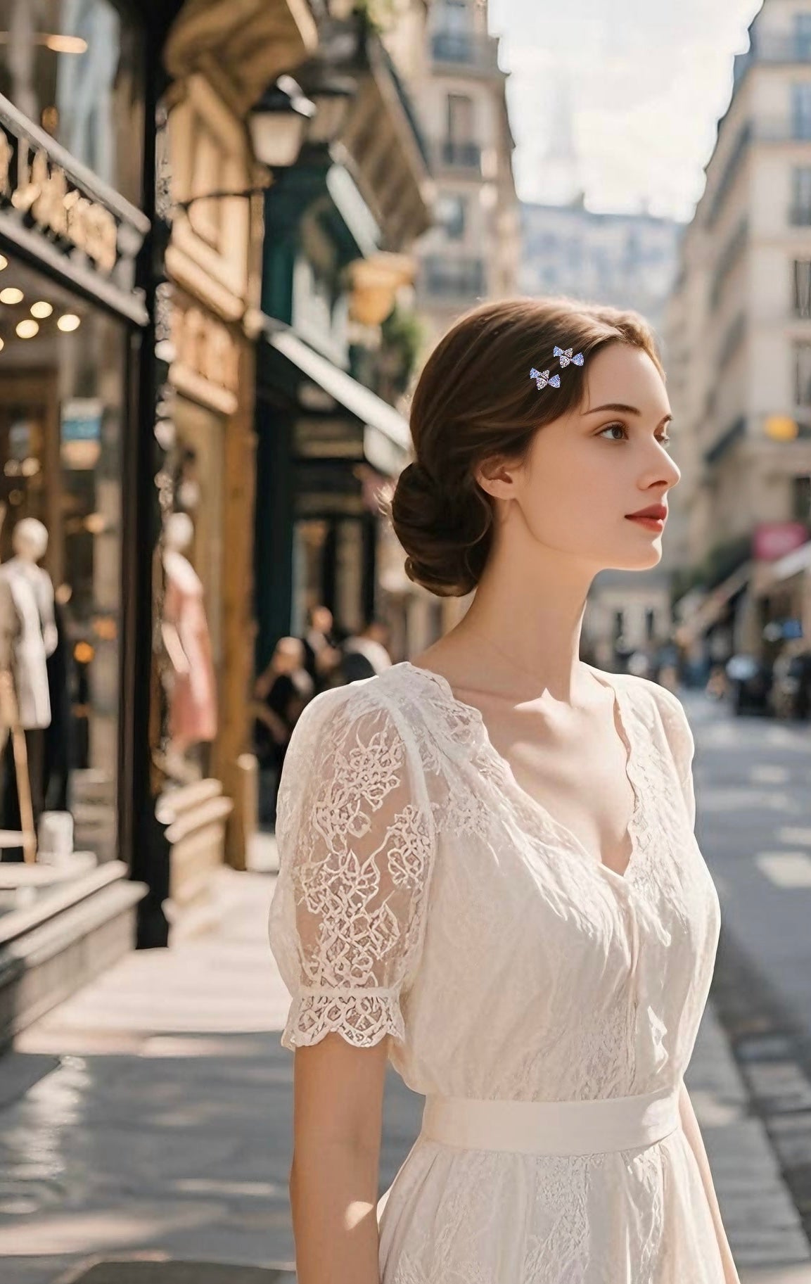 A unique double-bow design—one poised and graceful, the other bold and radiant.