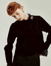Lustrous and rounded, each pearl is placed with care—nestled in flower centers or scattered along the stems like morning droplets—bringing softness and organic rhythm to the design.