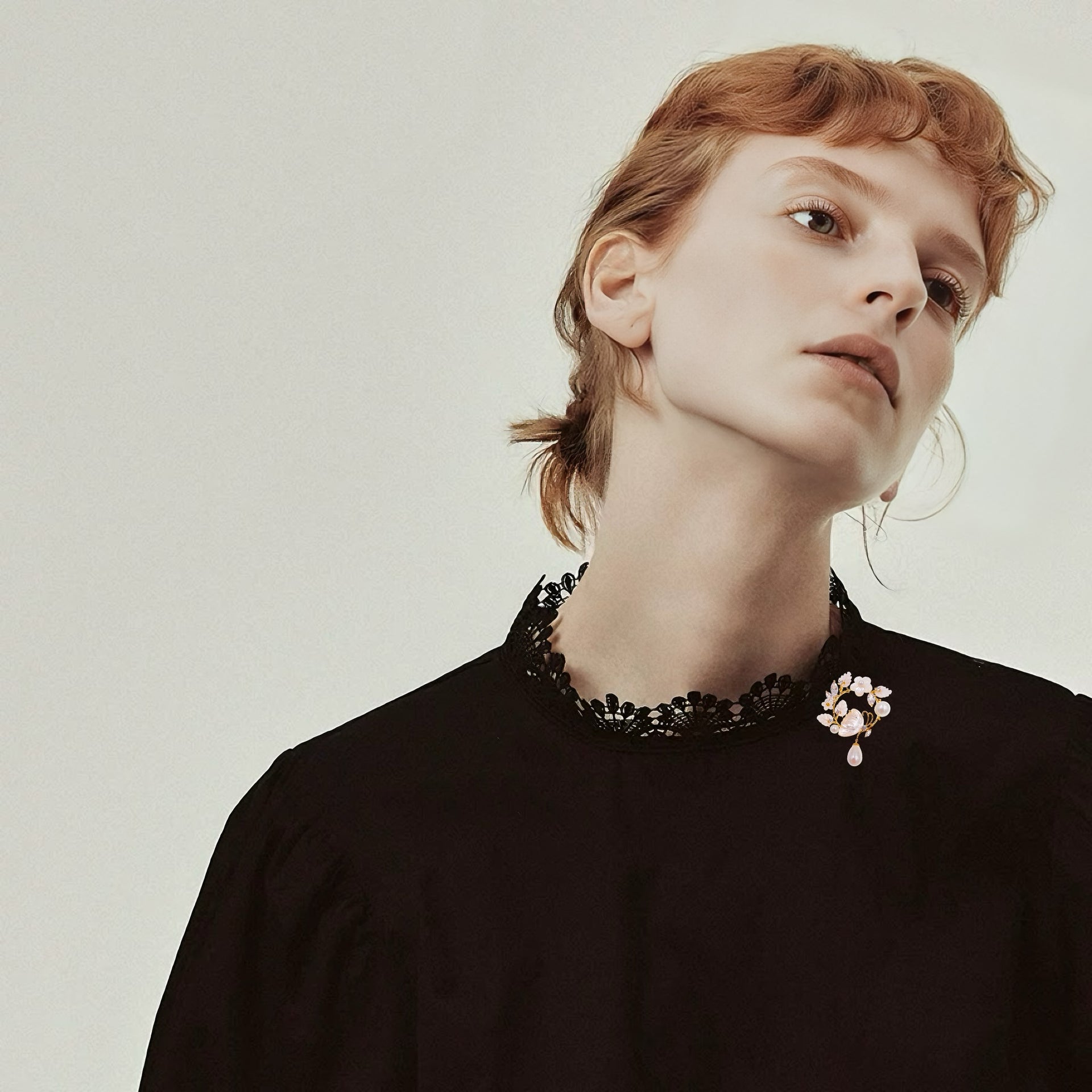 Bathed in morning light, a butterfly lands softly upon a blooming petal—nature’s gentlest moment, frozen in time. Papillon Pearl draws from this fleeting scene, weaving together mother-of-pearl, gleaming pearls, and 18K gold into a brooch that evokes grace, serenity, and movement.