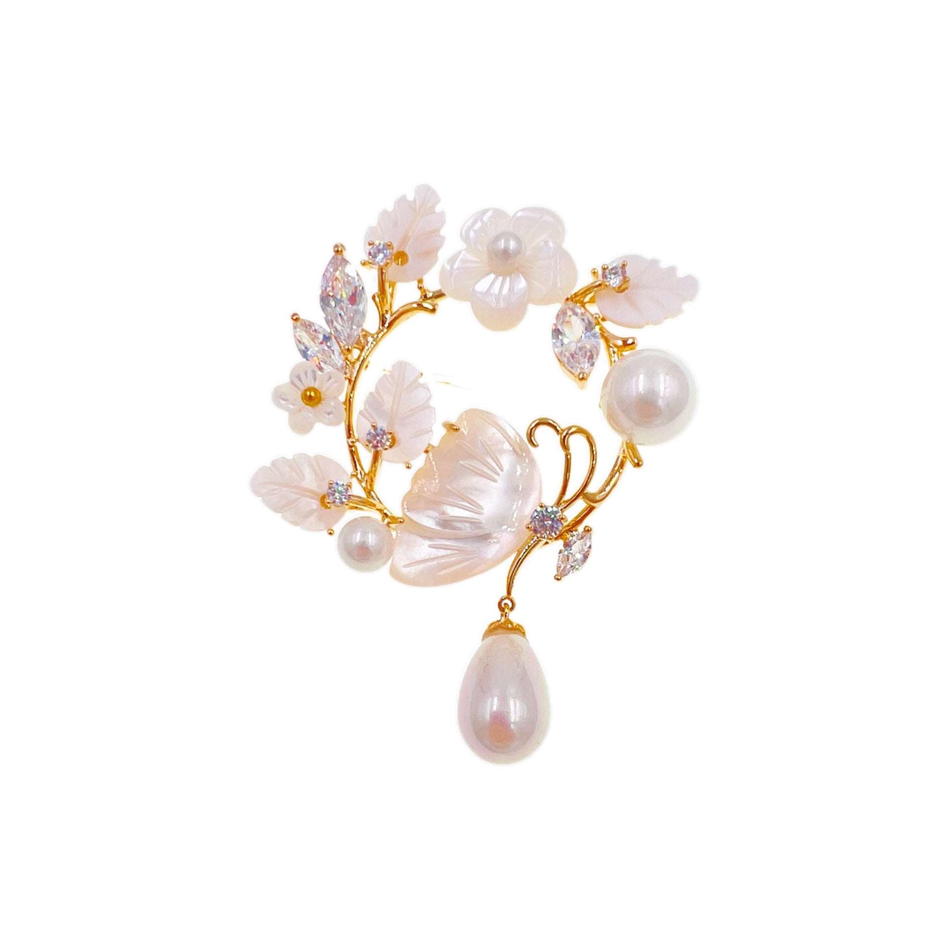 Papillon Pearl—Butterfly & Blossom Brooch in Shell and Pearl