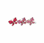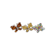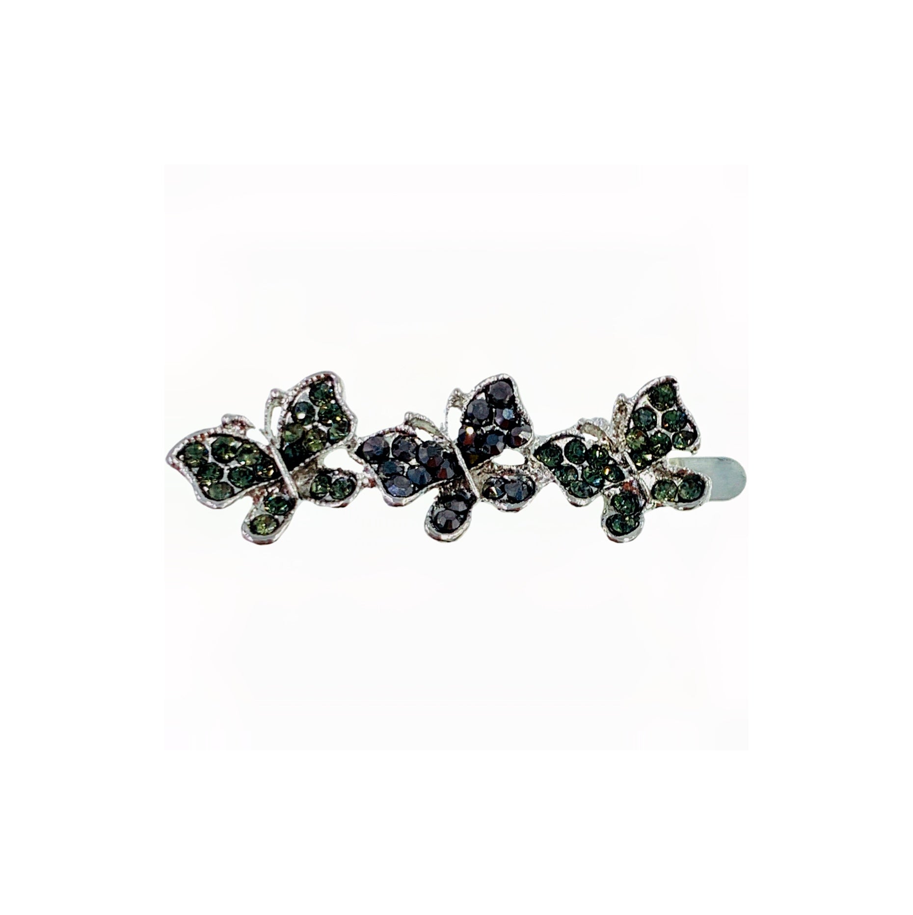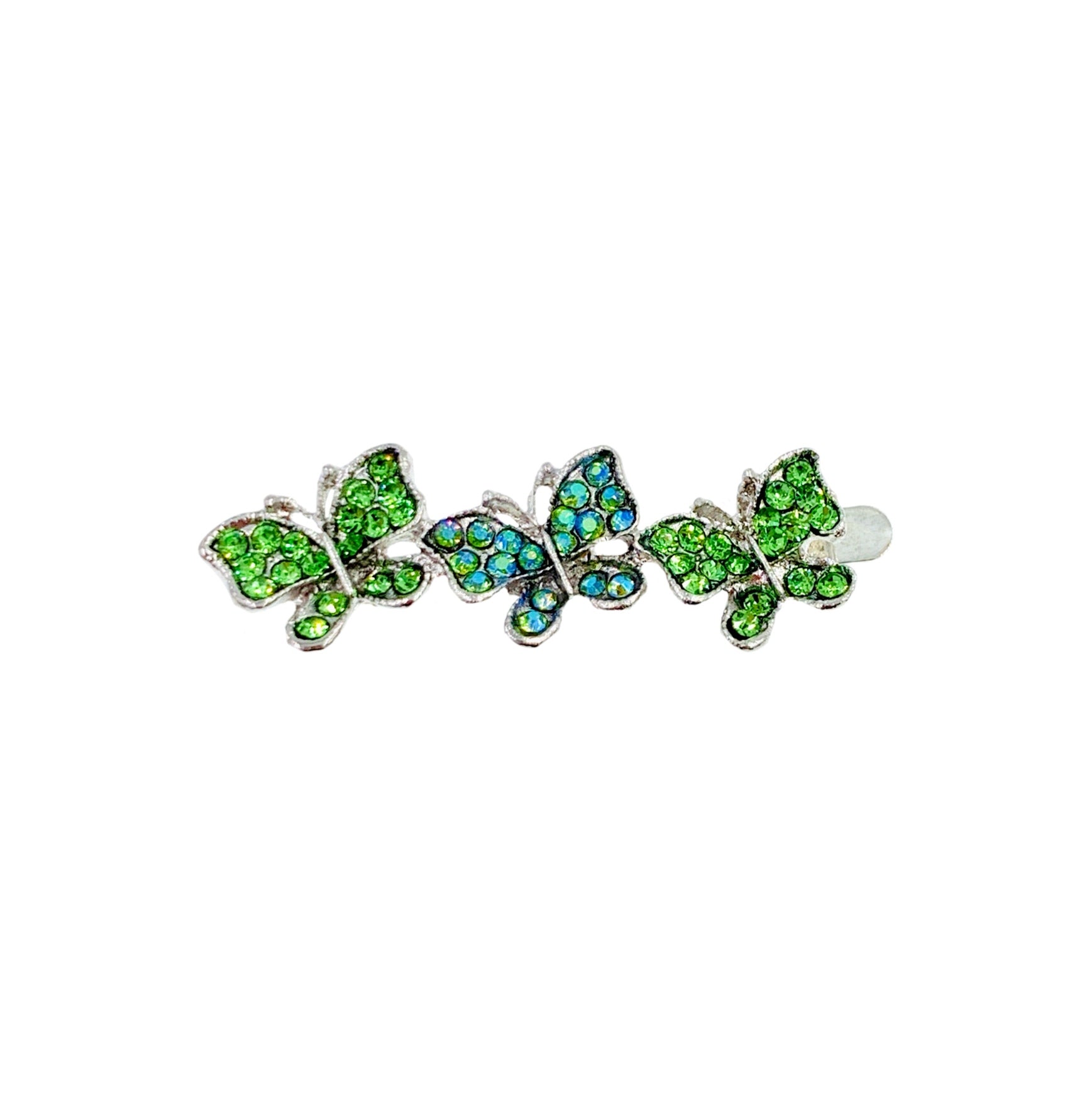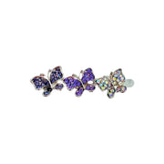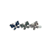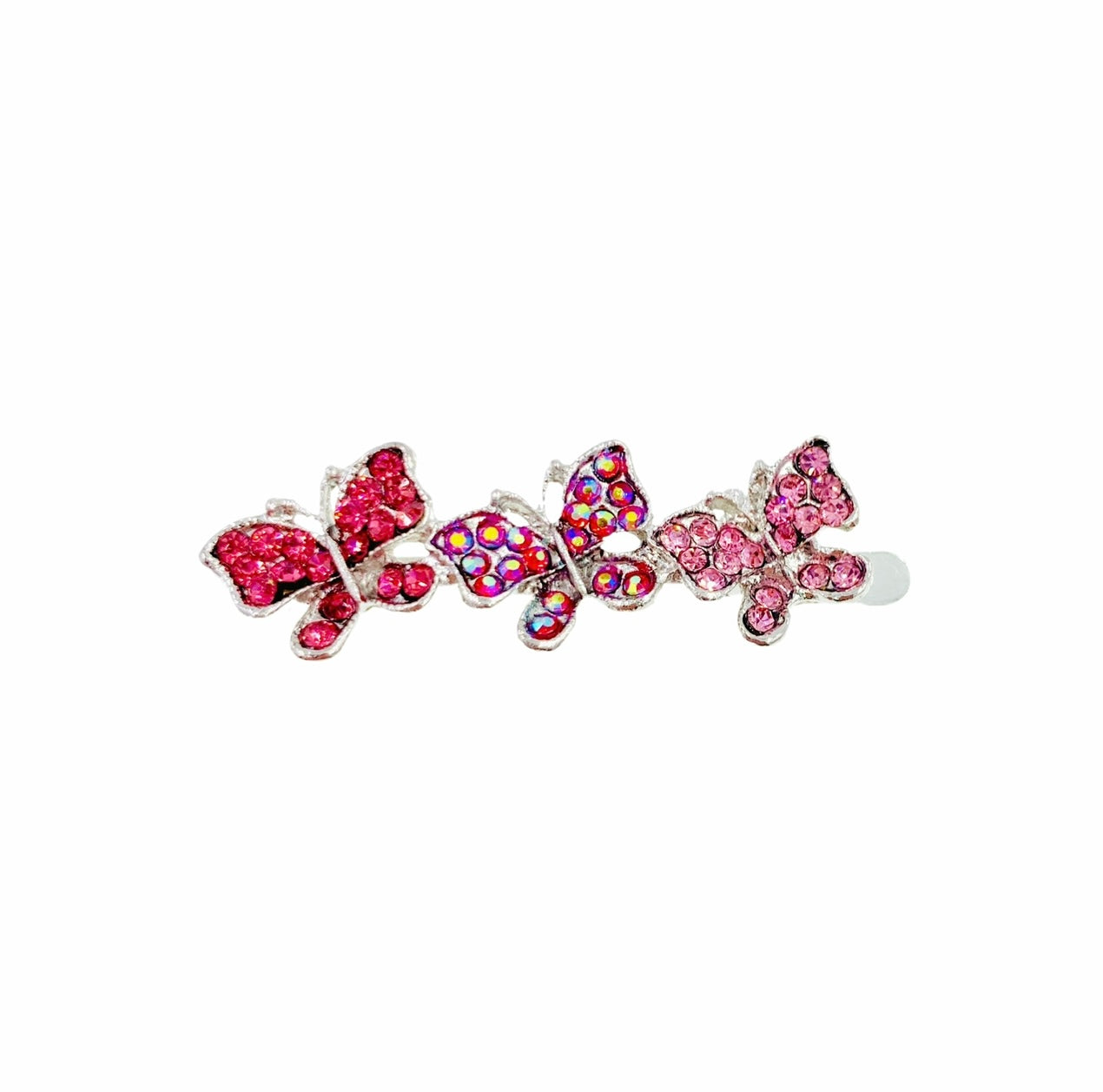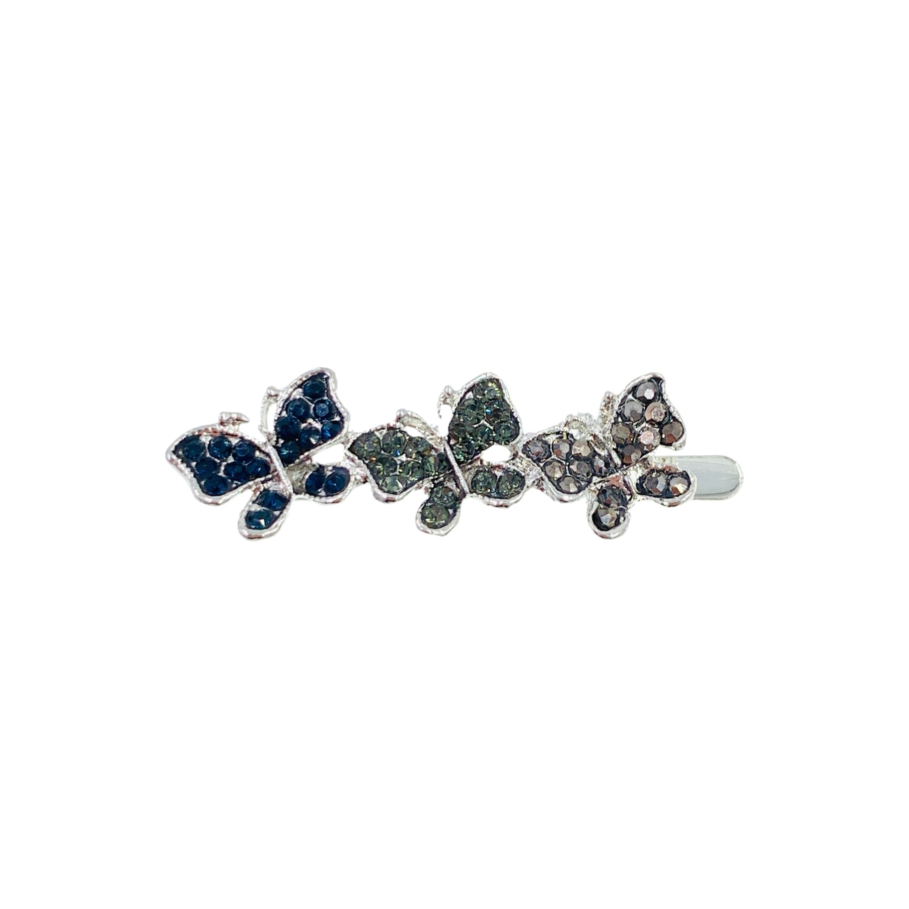 Exclusively designed by MOGHANT, the Papillon Trio Magnetic Clip features three dainty butterflies aligned in harmony. Each butterfly showcases a subtle gradient of color, from deep to light within the same hue family — like wings awakening at dawn, layered and ethereal. Every wing is meticulously adorned with high-shine rhinestones, shimmering with every movement.