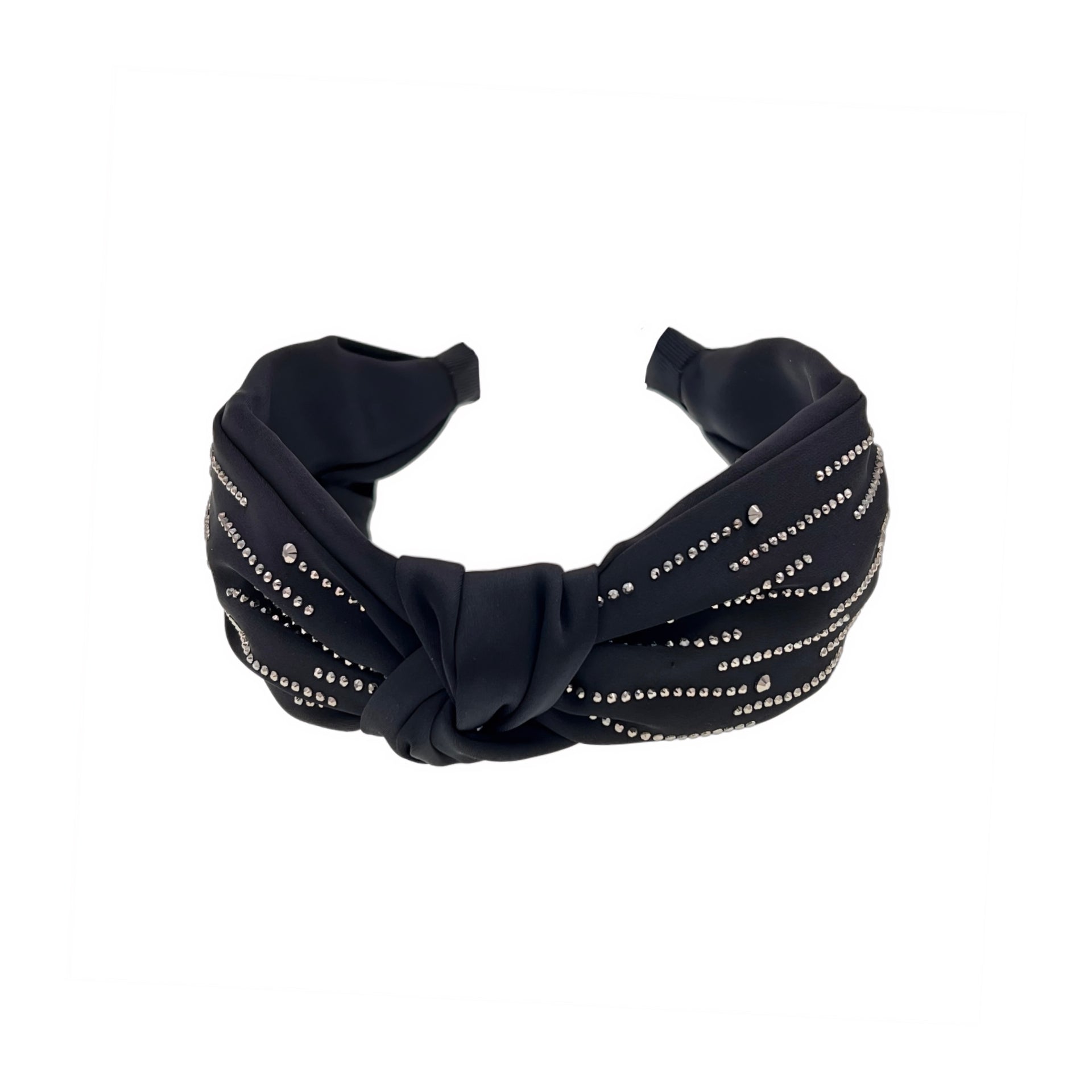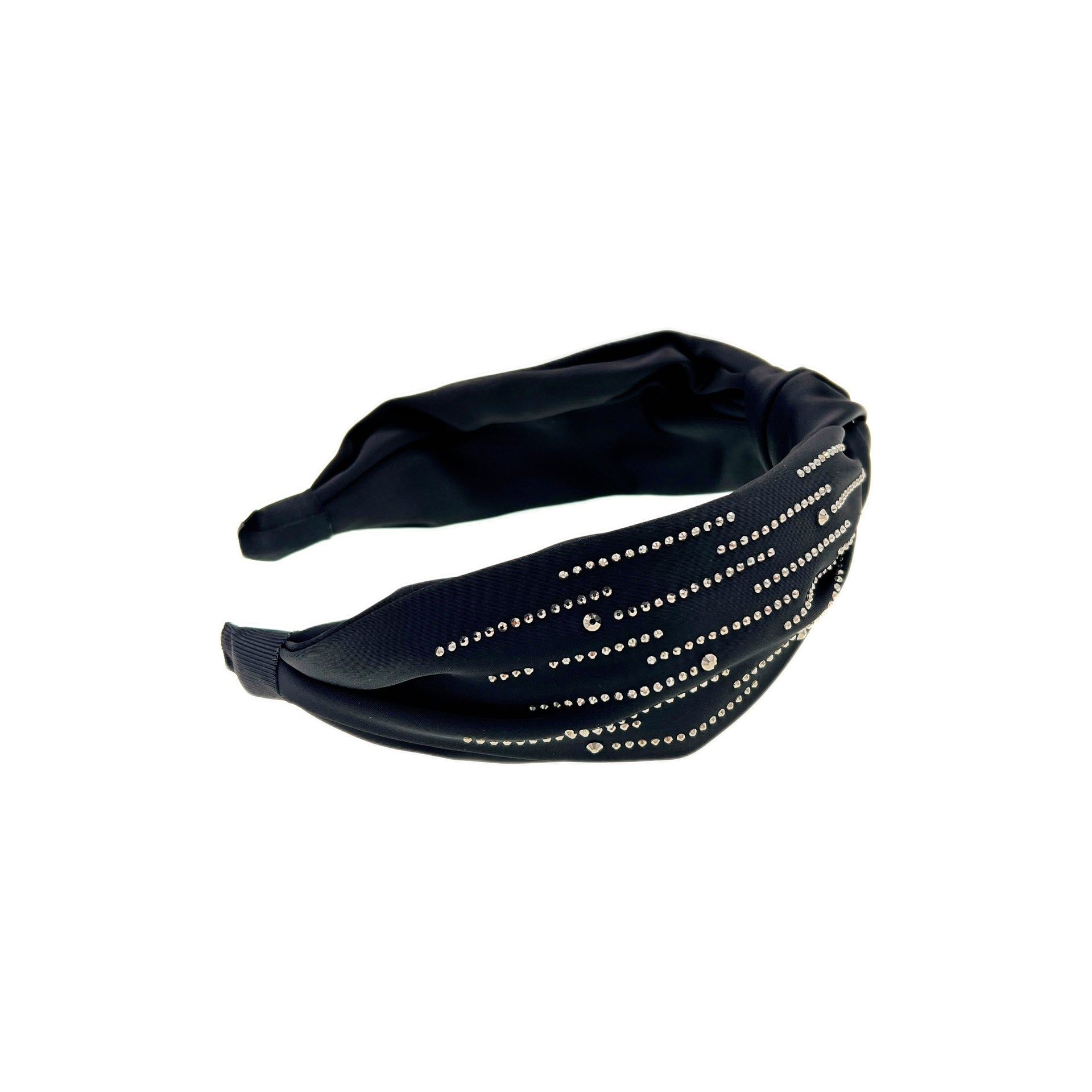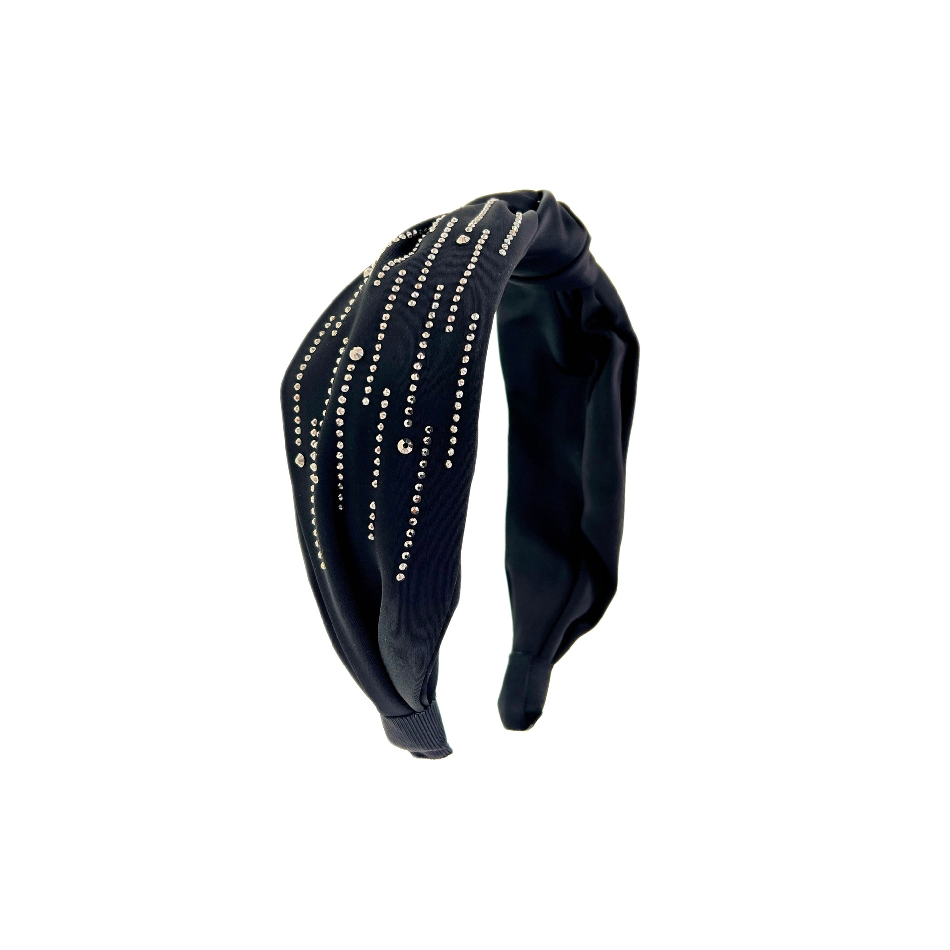 Stellar Knot takes on the classic bow silhouette with a center knot for added dimension, paired with a wide band for an elegant presence. Multiple rows of shimmering rhinestones cascade along each side like falling stars, bringing movement and sparkle to every turn of the head.
