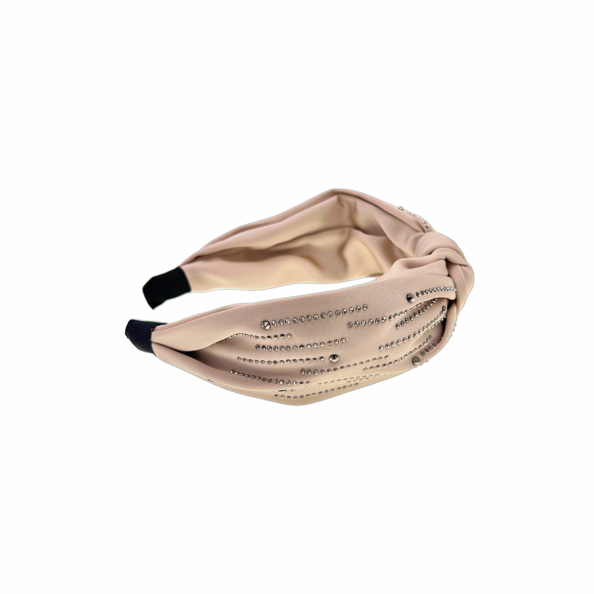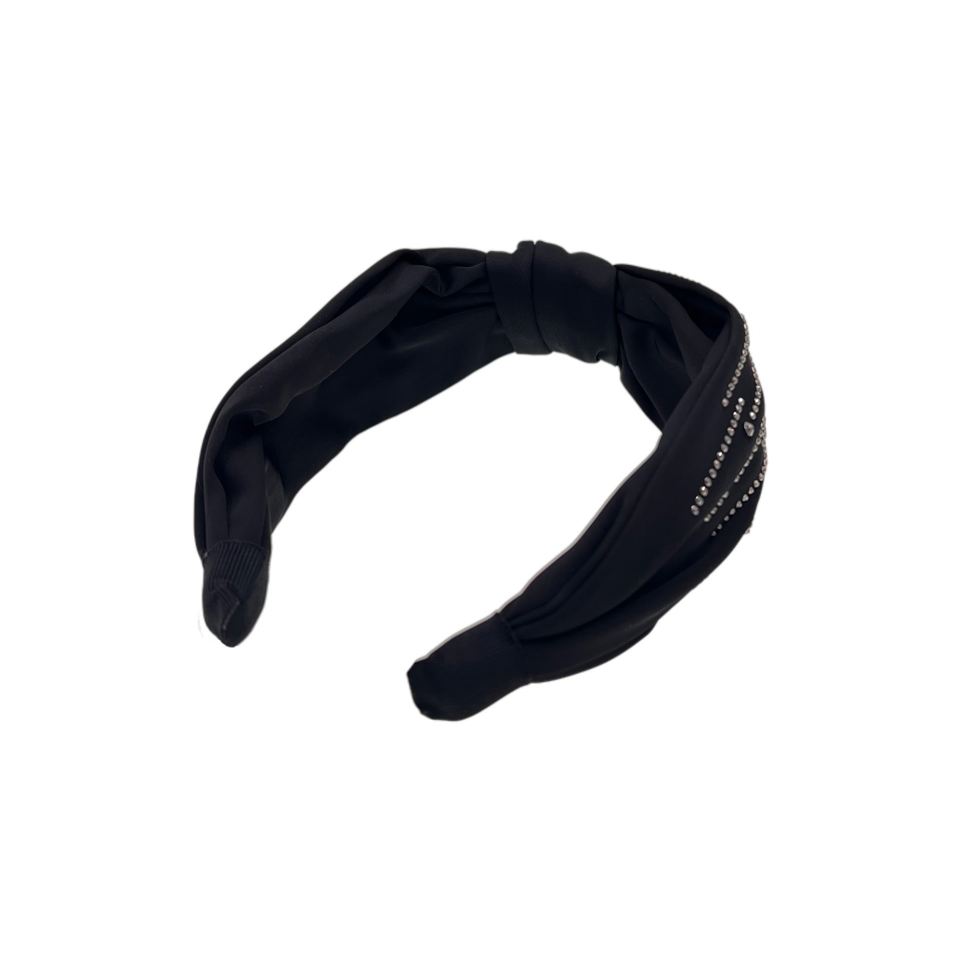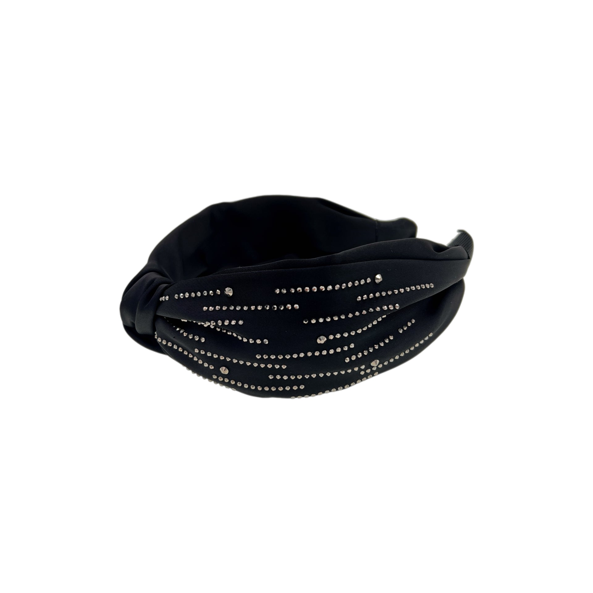 Stellar Knot takes on the classic bow silhouette with a center knot for added dimension, paired with a wide band for an elegant presence. Multiple rows of shimmering rhinestones cascade along each side like falling stars, bringing movement and sparkle to every turn of the head.
