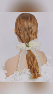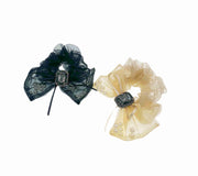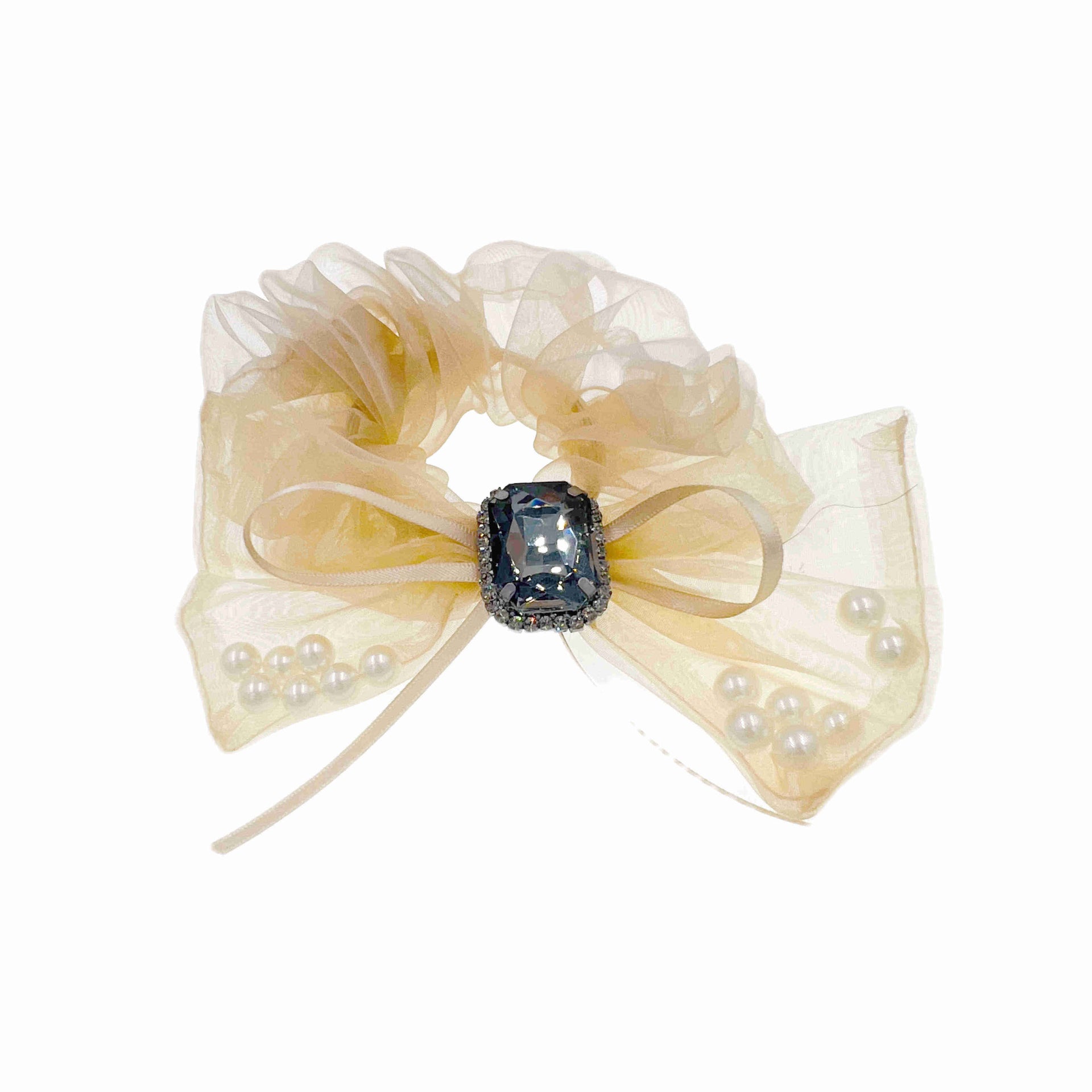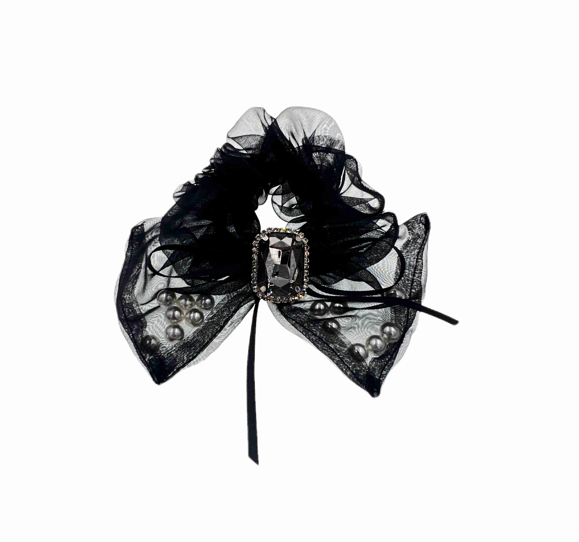 Suzette Bouchard Handmade Fabric Bow Scrunchie Ponytail Holder Hair Rope Tie Rhinestone Crystal Pearl E16