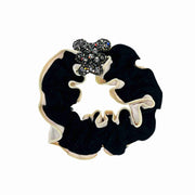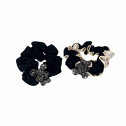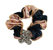This French-style double-sided handmade fabric scrunchie features delicate satin and thick lace fabrics, providing exquisite tactile sensation and visual enjoyment. The Czech crystals bear decoration adds a touch of cuteness and liveliness.