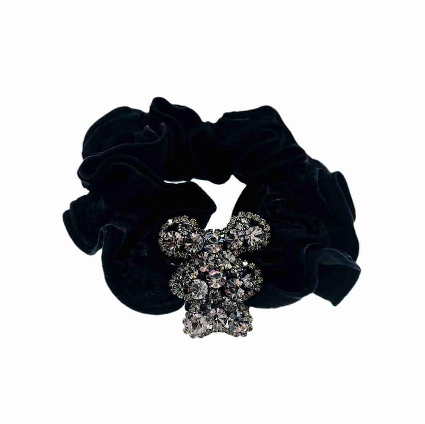 Berdine Travert French Handmade Bear Fabric Scrunchie Hair Rope Tie Ponytail Holder Czech Crystals E38