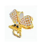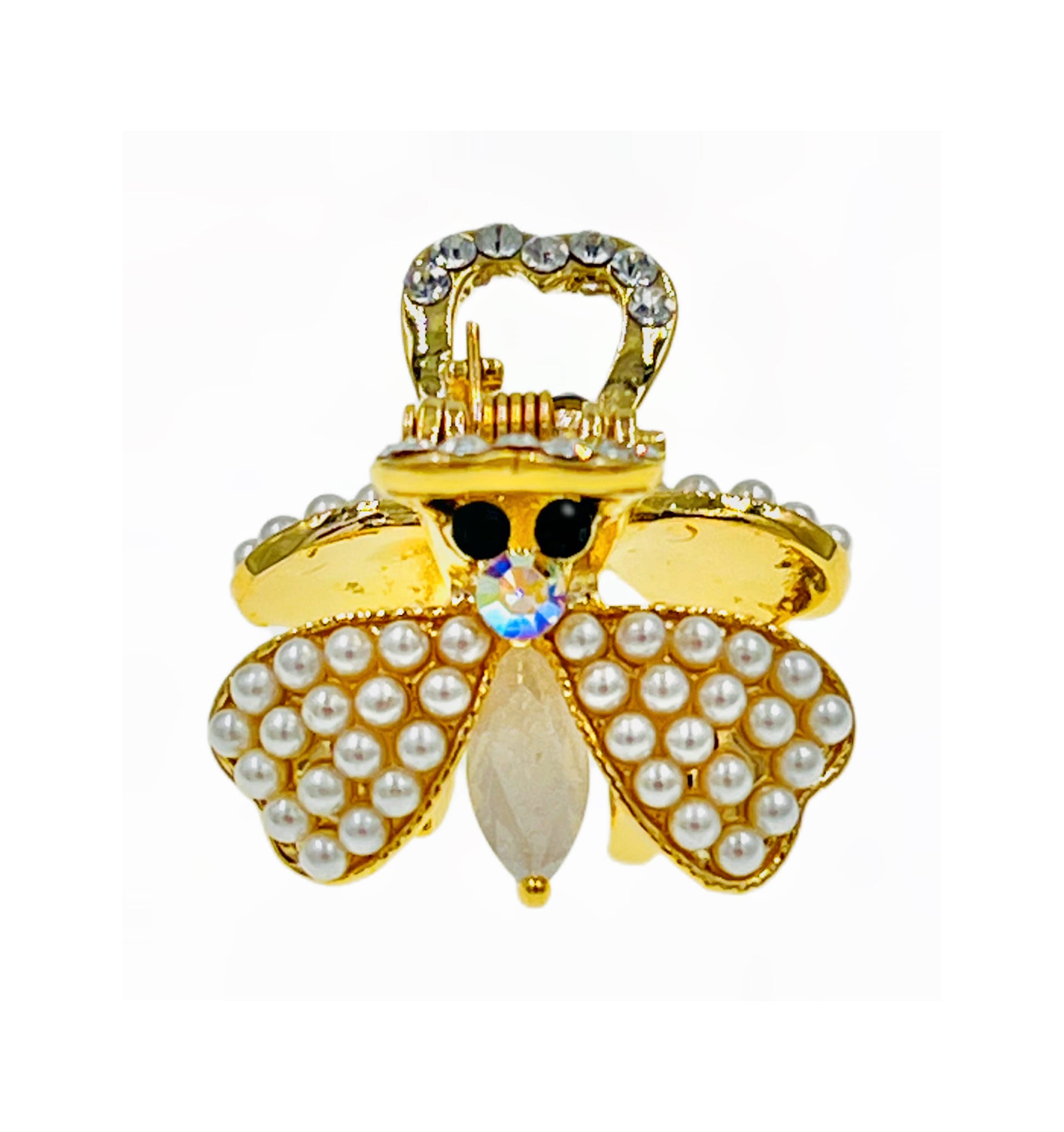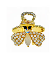 Sally Jimenez Small Gold Pearl Bee Hair Claw Jaw Clip Cubic Zirconia CZ-3
