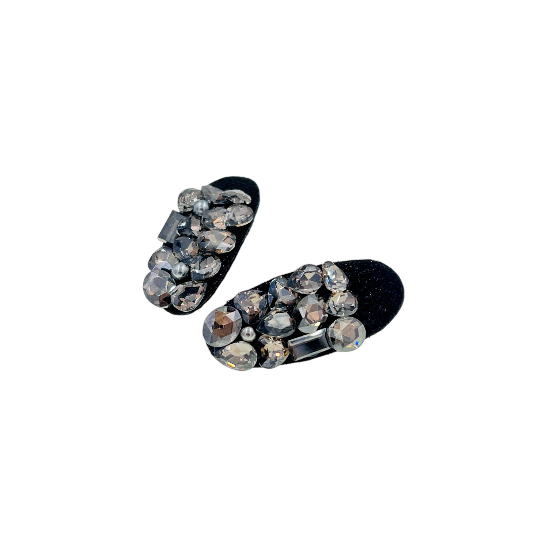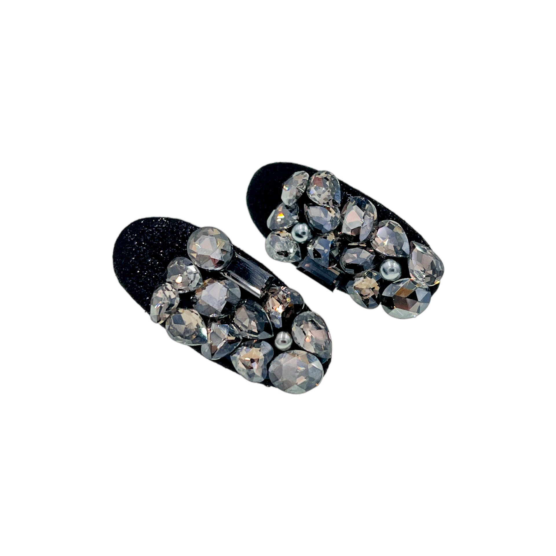 Featuring a black or silver glitter base and adorned with Czech rhinestones in various shapes, this piece blends understated luxury with radiant charm.