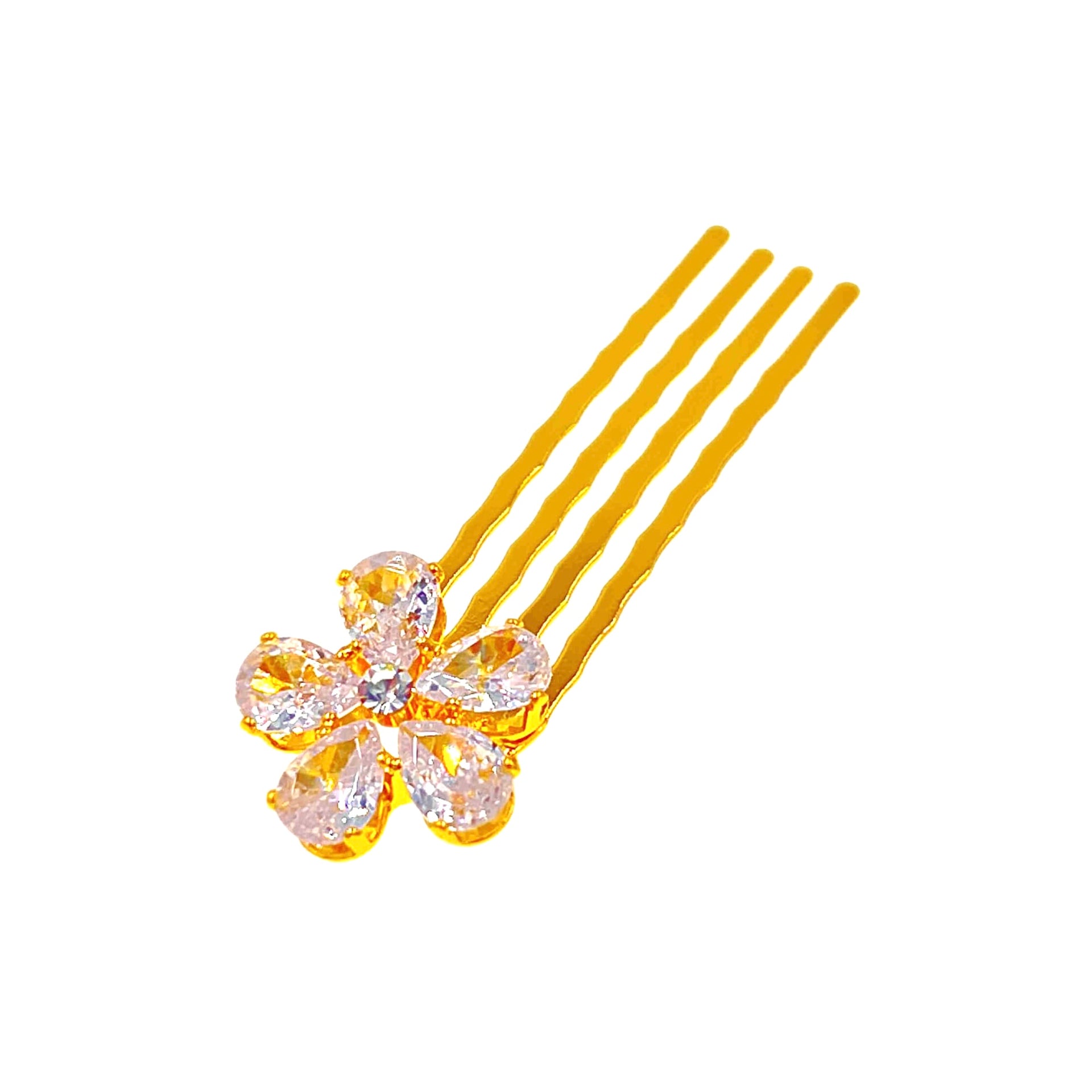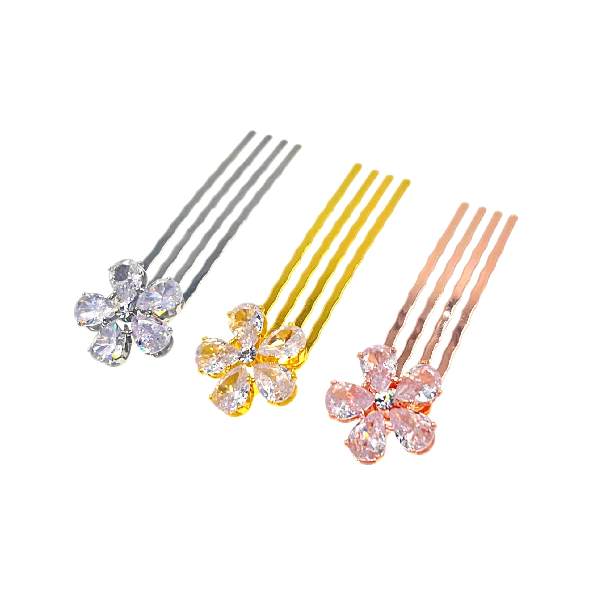 Every piece is carefully hand-set with AAA-grade cubic zirconia, radiating brilliance through either clean modern lines or sculpted floral motifs. Petite yet eye-catching, this comb is made to turn heads — subtly and stylishly.