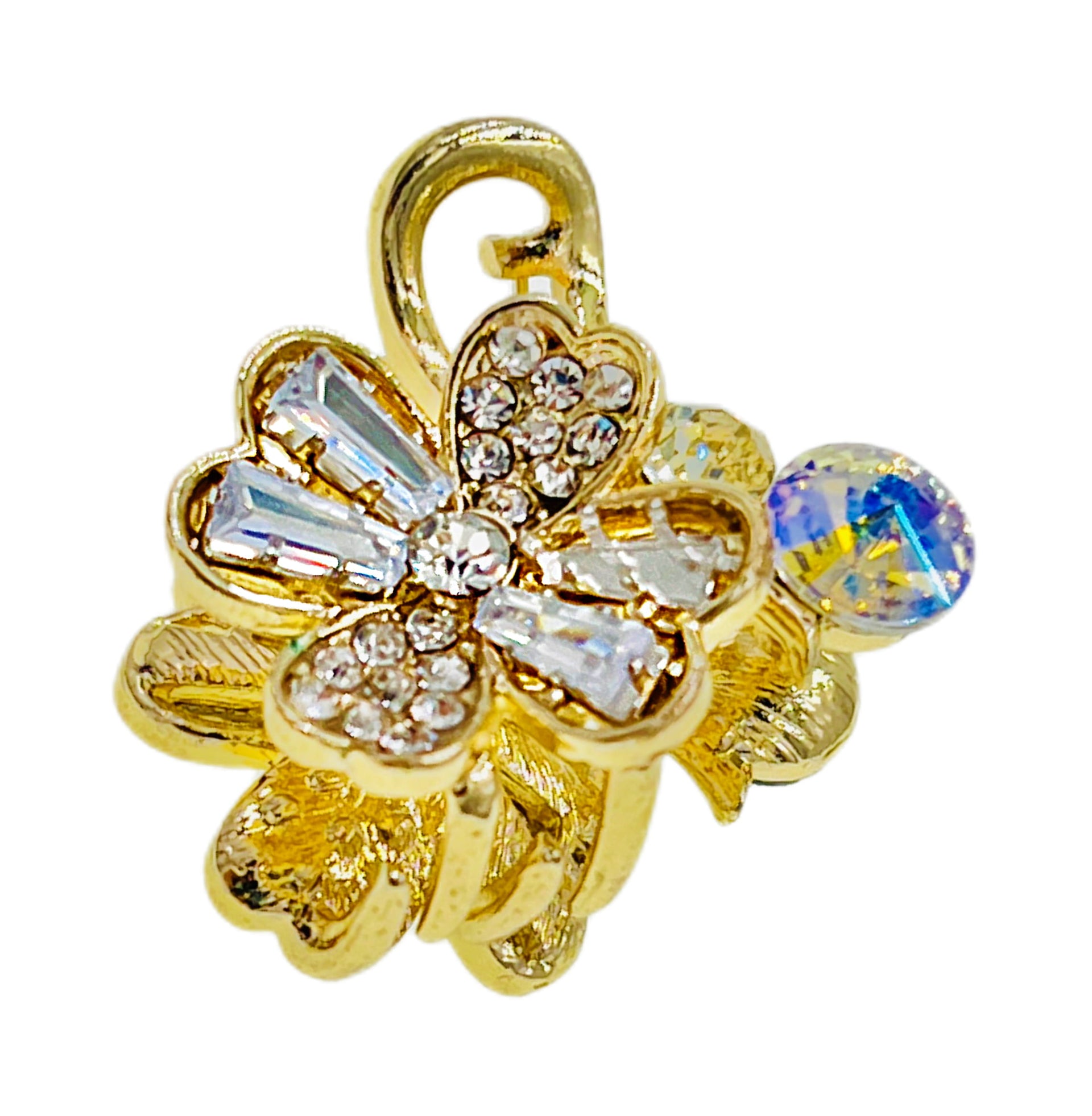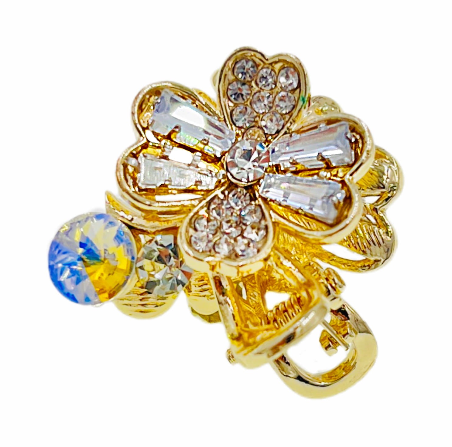 Sally Jimenez Gold Flower Hair Claw Jaw Clip Cubic Zirconia CZ-1
