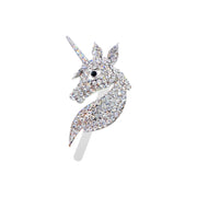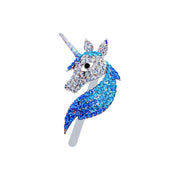The mane is the true showstopper: a cascade of meticulously arranged Czech rhinestones in gradient hues, shifting seamlessly from light to dark, from soft to bold—like a ribbon of rainbow dancing in the wind. It brings a sense of motion, fantasy, and grace to the entire piece.