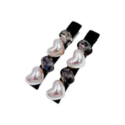 Each piece features two plump heart-shaped pearls and two Austrian crystals, set in an elegant alternating pattern—pearl, crystal, pearl, crystal.