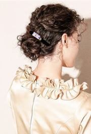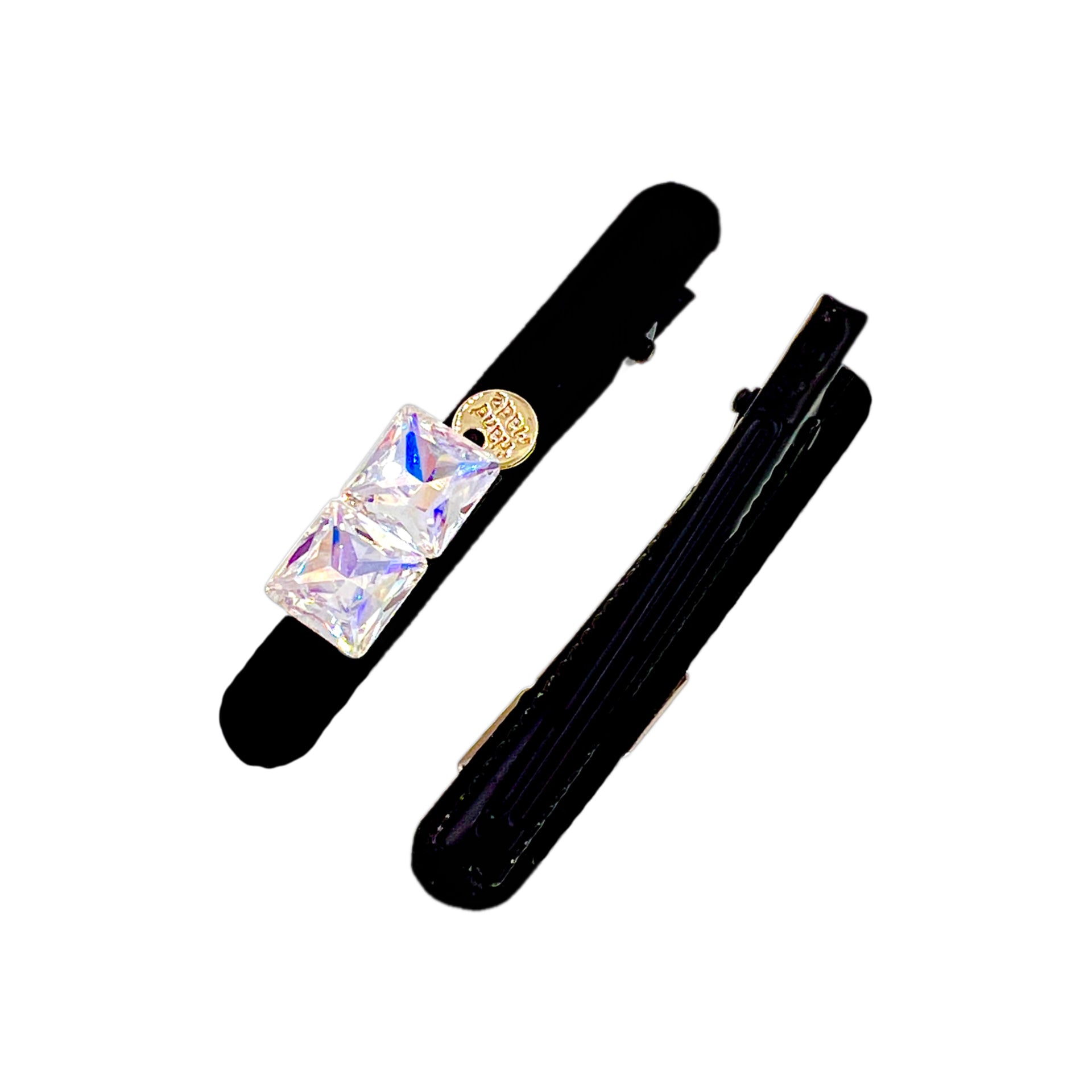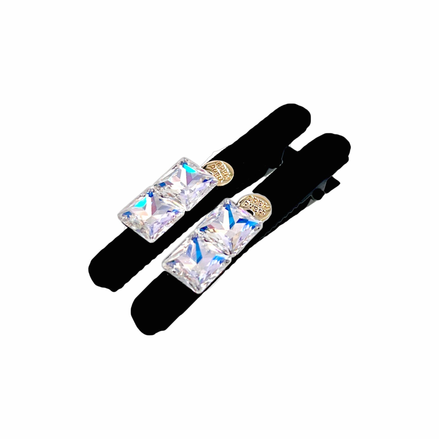 Handcrafted with a clean, minimalist silhouette, this sleek alligator clip features two multi-faceted, aurora-tinted Austrian crystal squares that catch the light with a soft, iridescent glow—subtle yet striking.