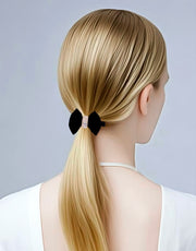 Pure black satin, hand-stitched into a soft, sculpted bow.