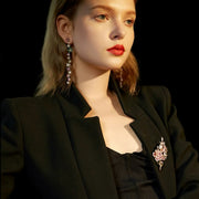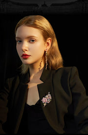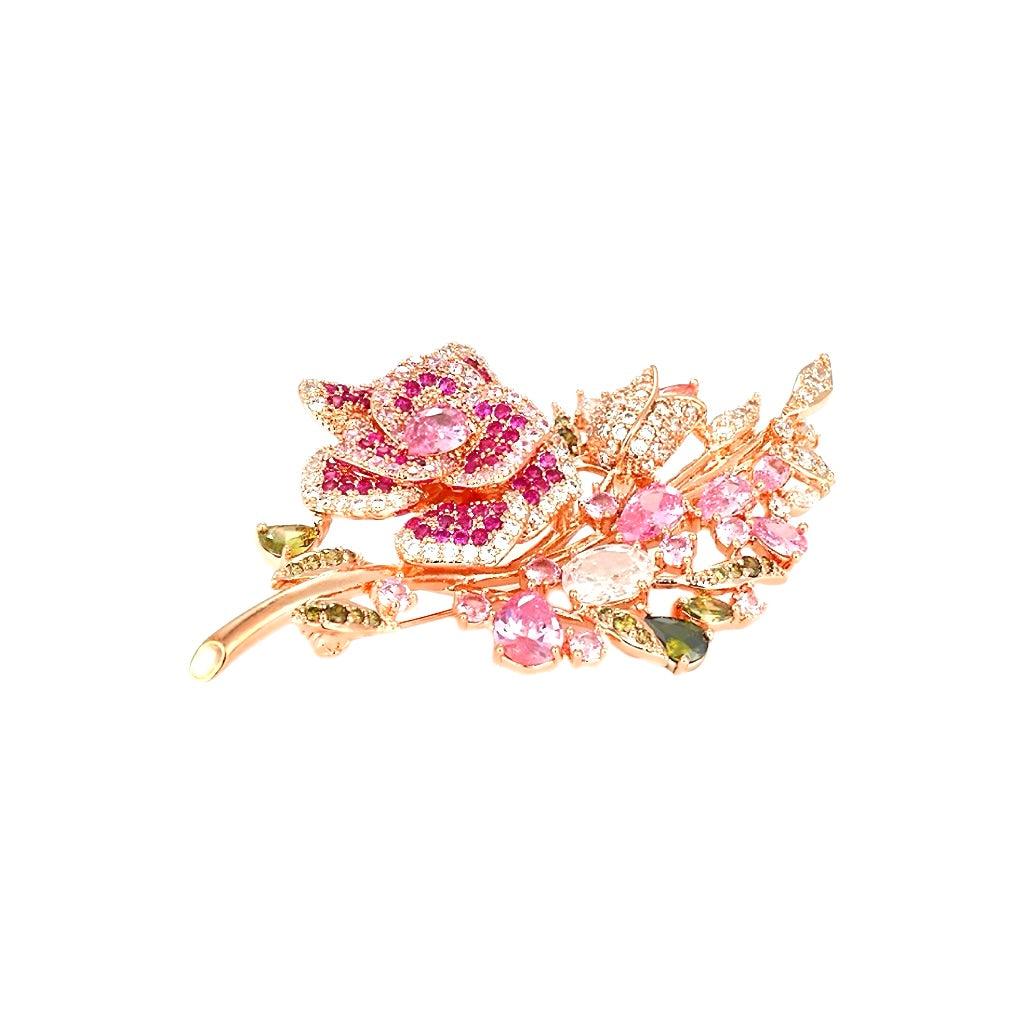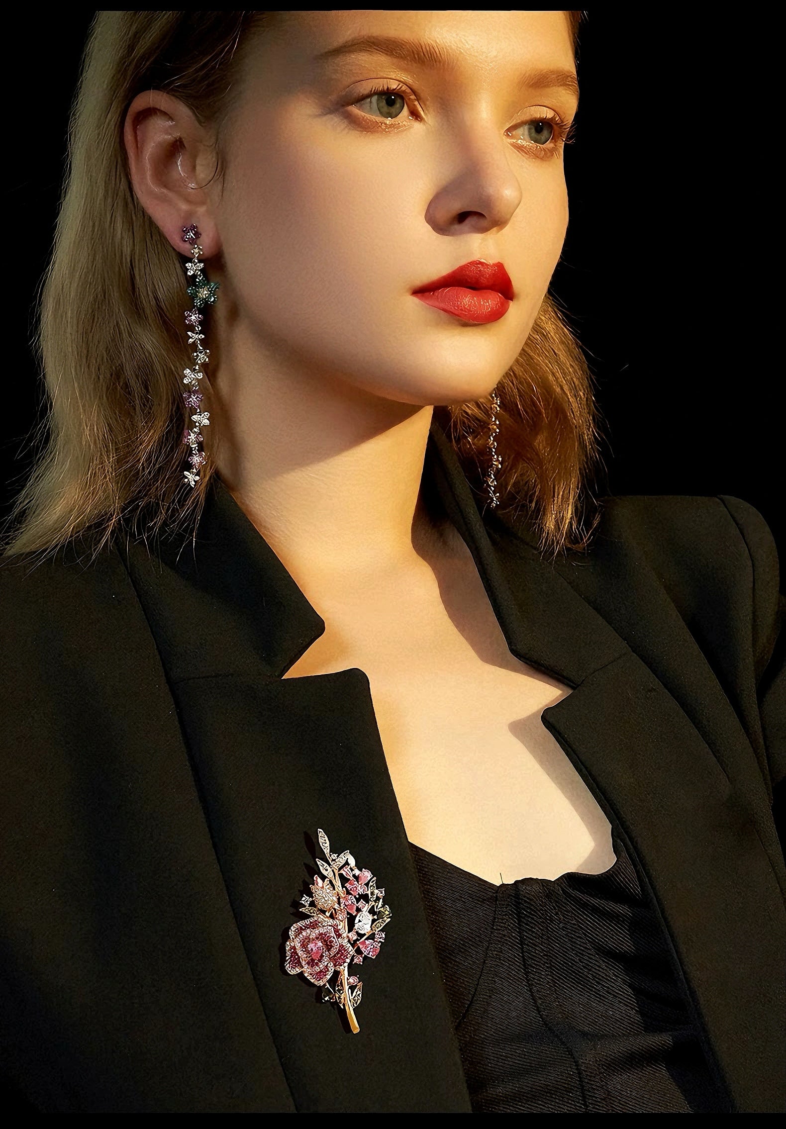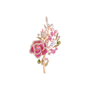 Elysian Bloom Pink Crystal Rose Bouquet Brooch Pin
