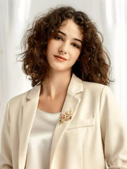 The brooch features a high-density copper base, plated with 18K real gold for a subtle, luminous finish.
