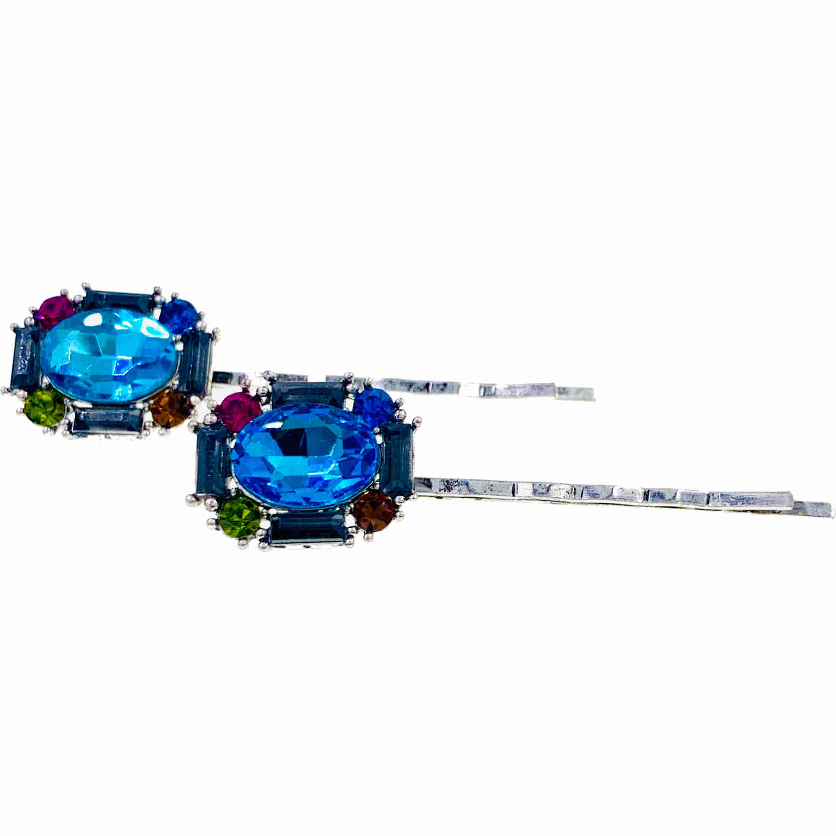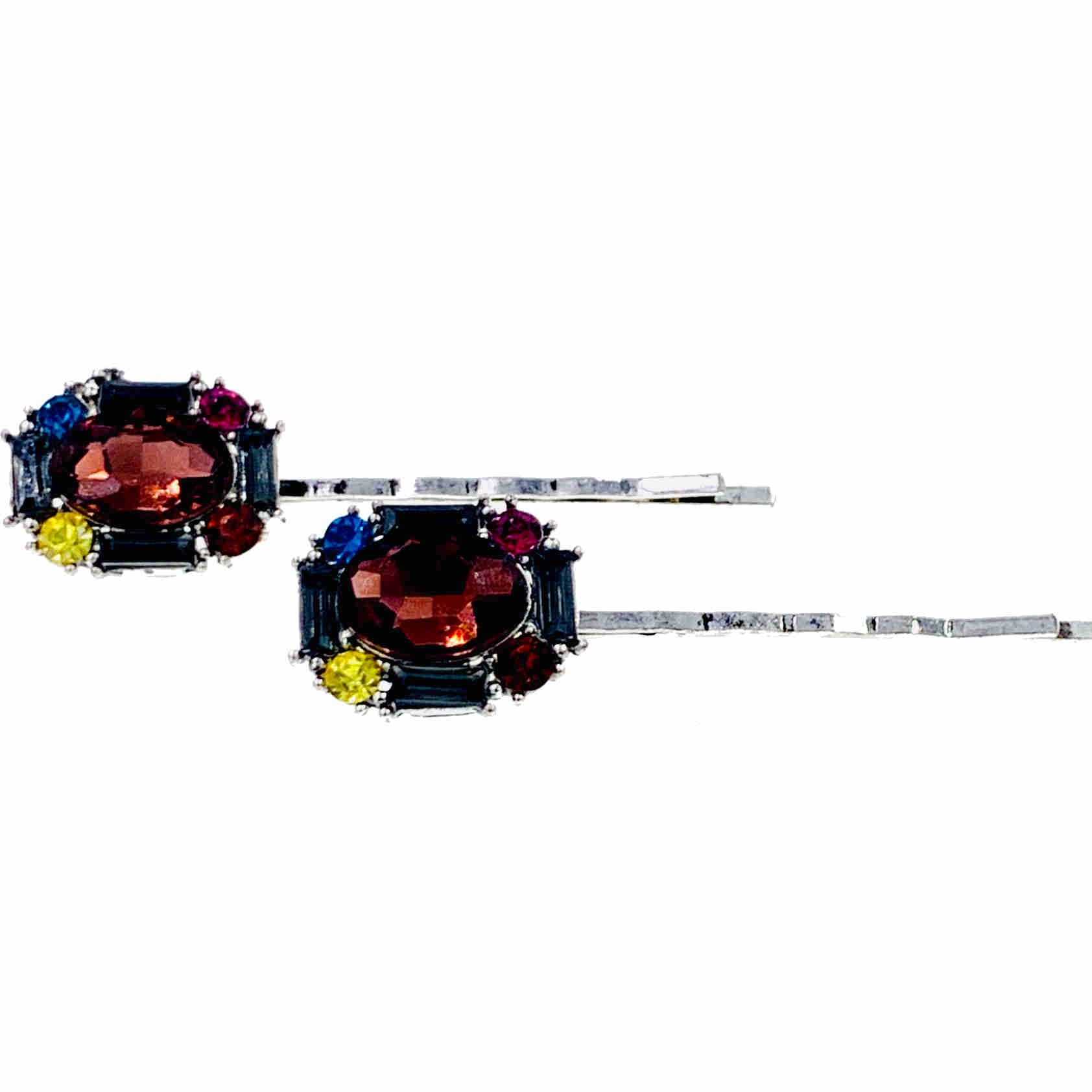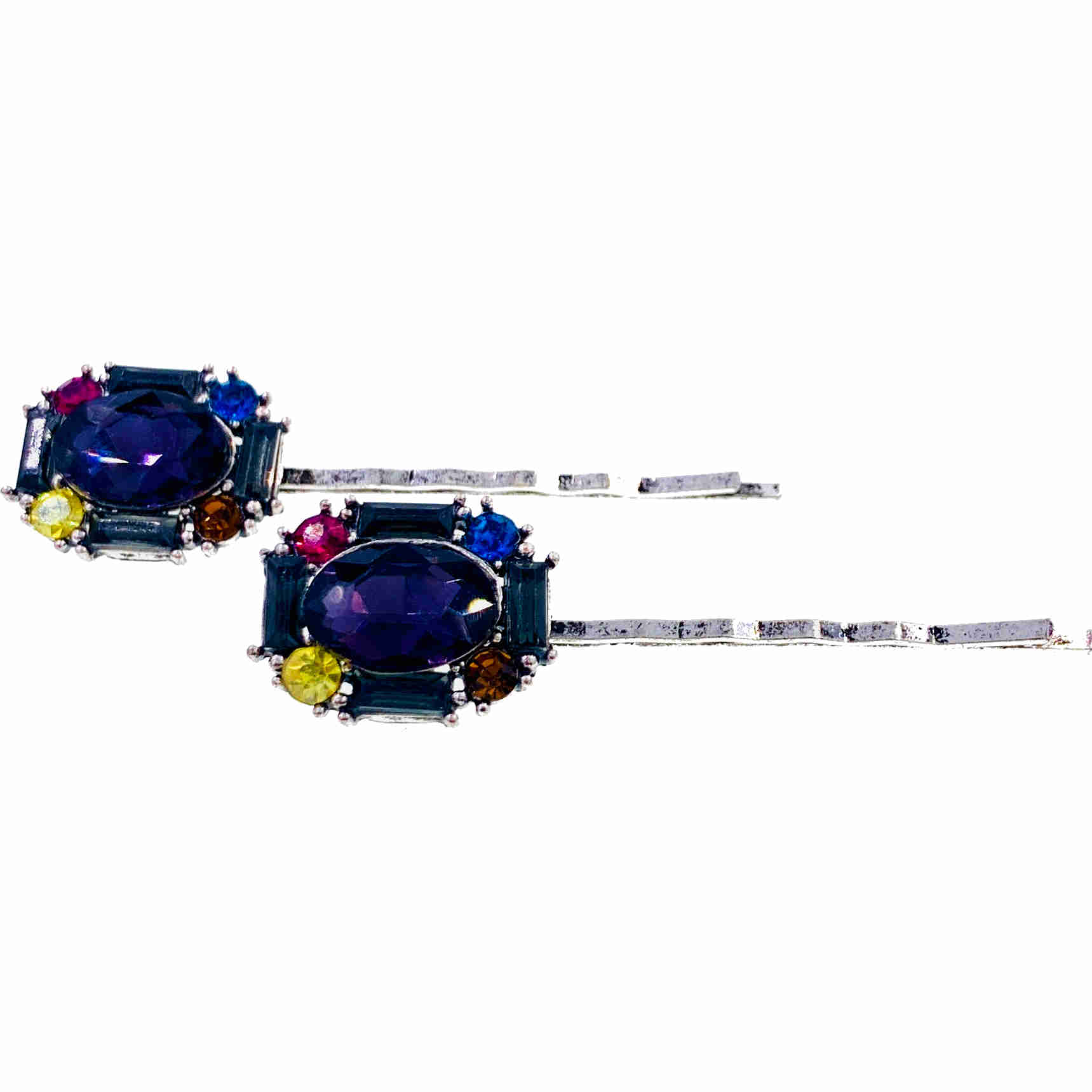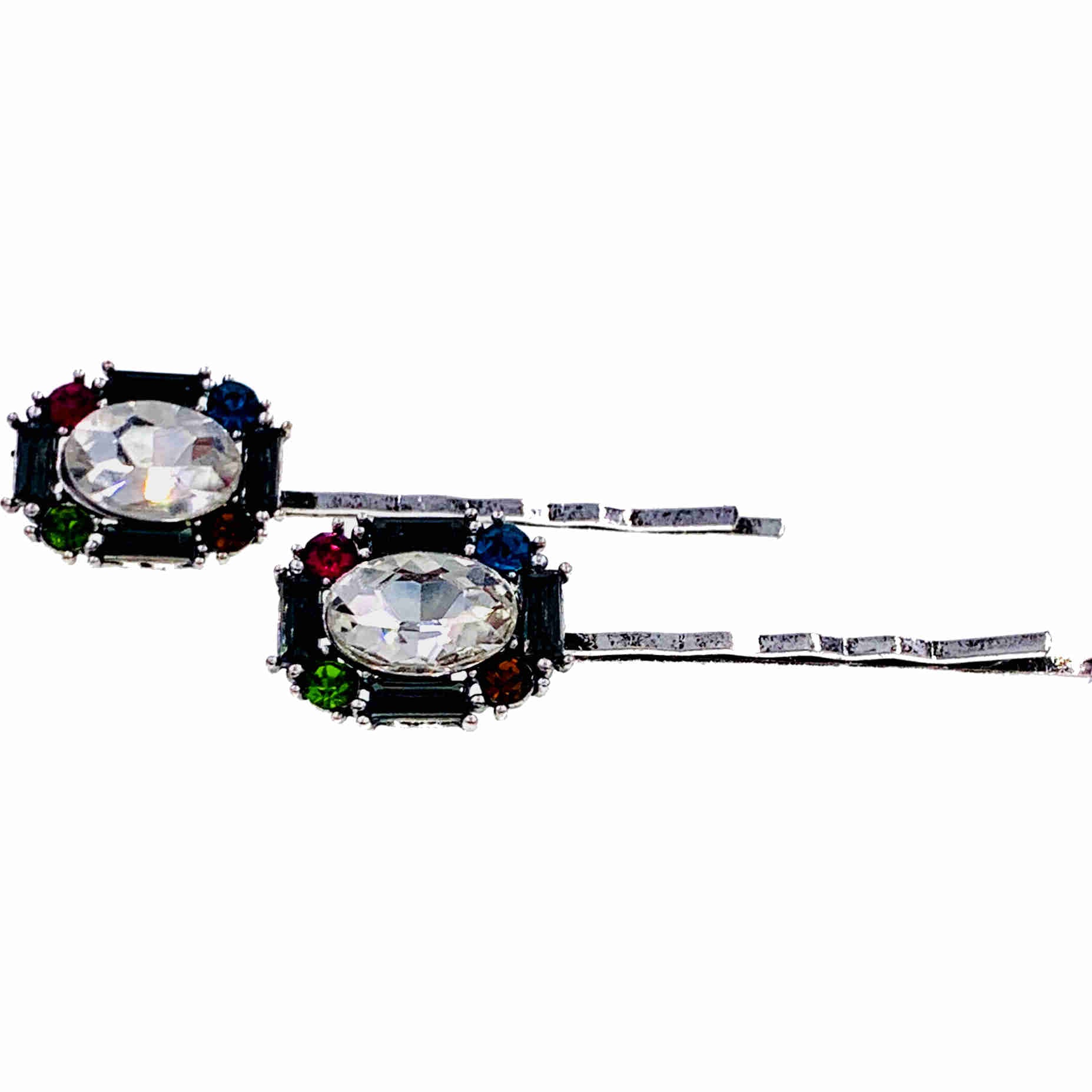 - Silver metal base stacked with multi-facade black rhinestone crystals. Sparkly and vivid.