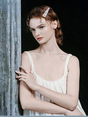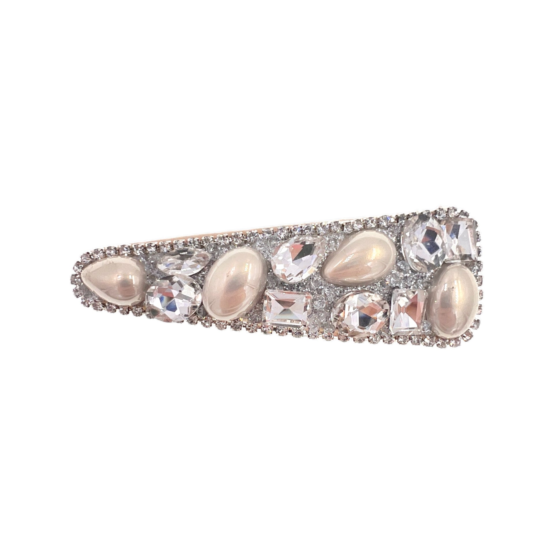 Delicately crafted on a soft leather base, the clip is adorned with multi-sized faceted crystal “ice cubes” and half-round faux pearls, radiating a gentle yet luxurious glow as light and shadow intertwine.