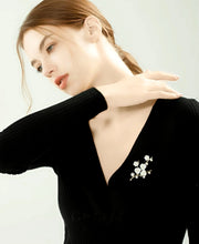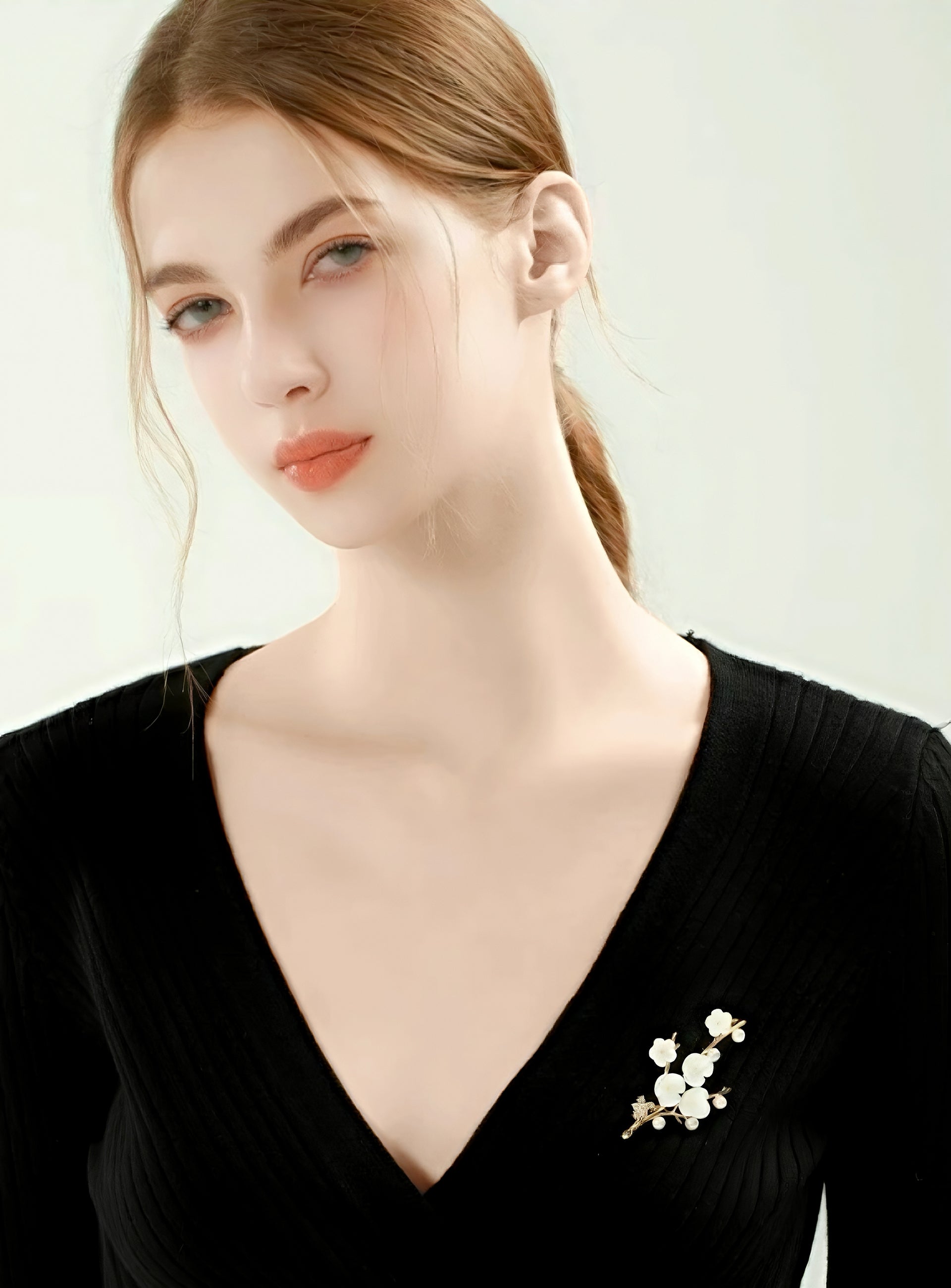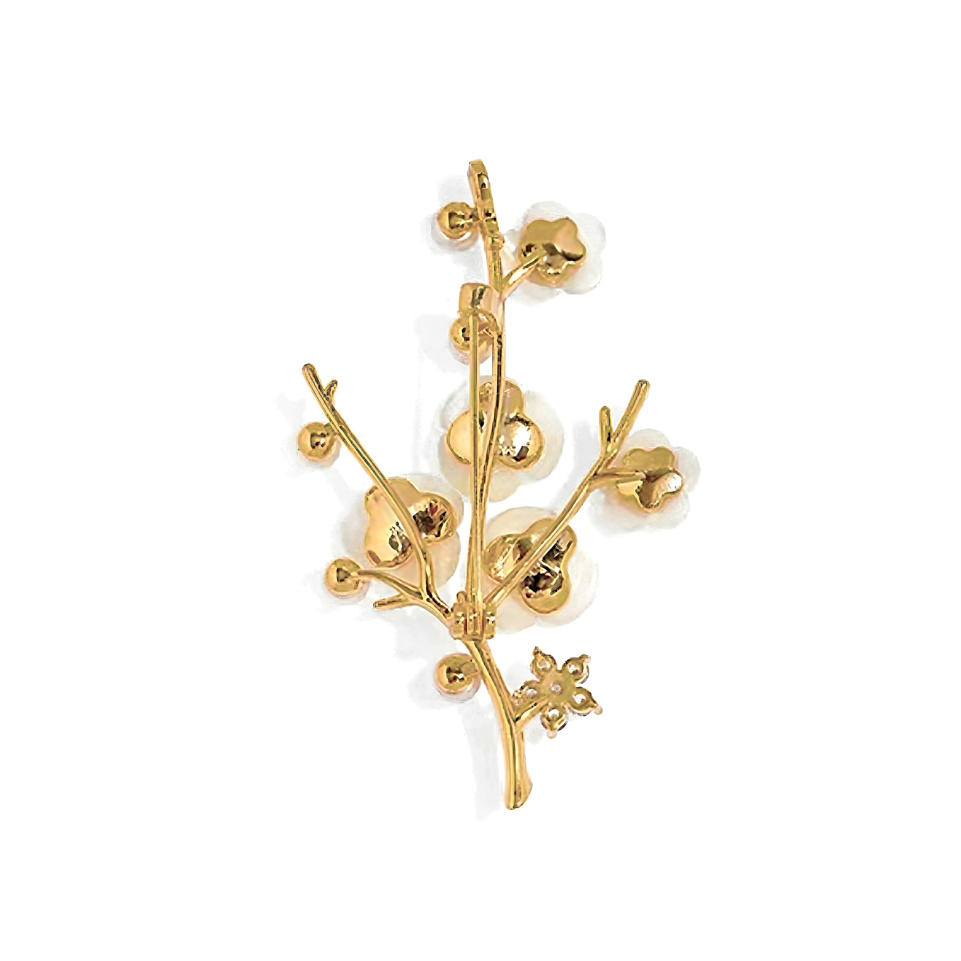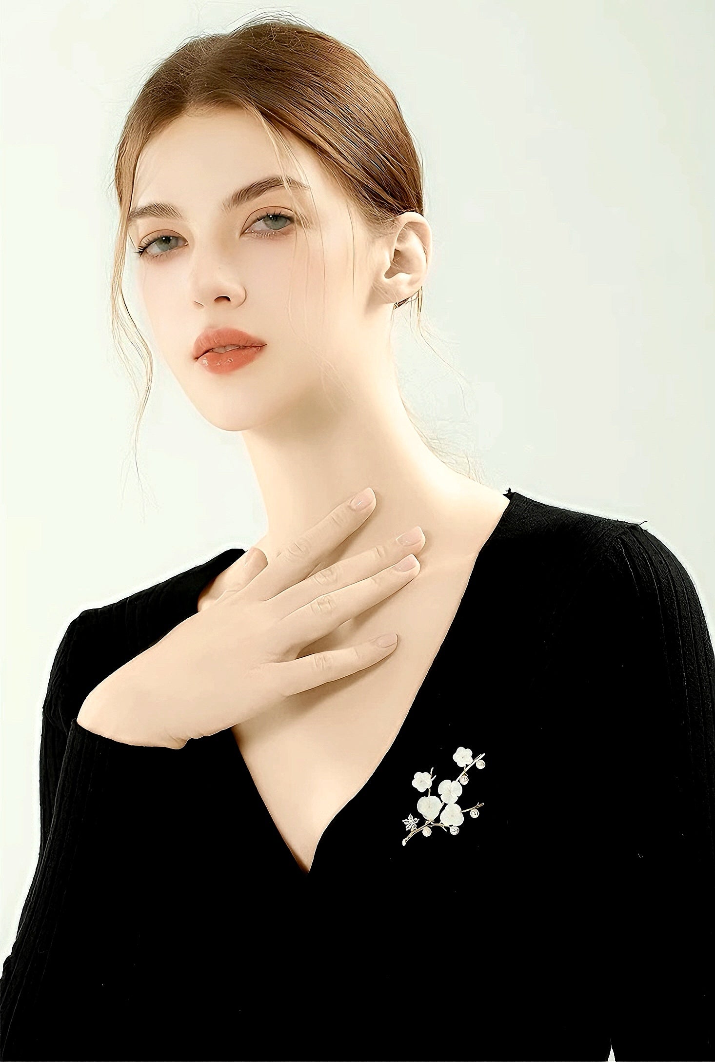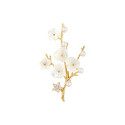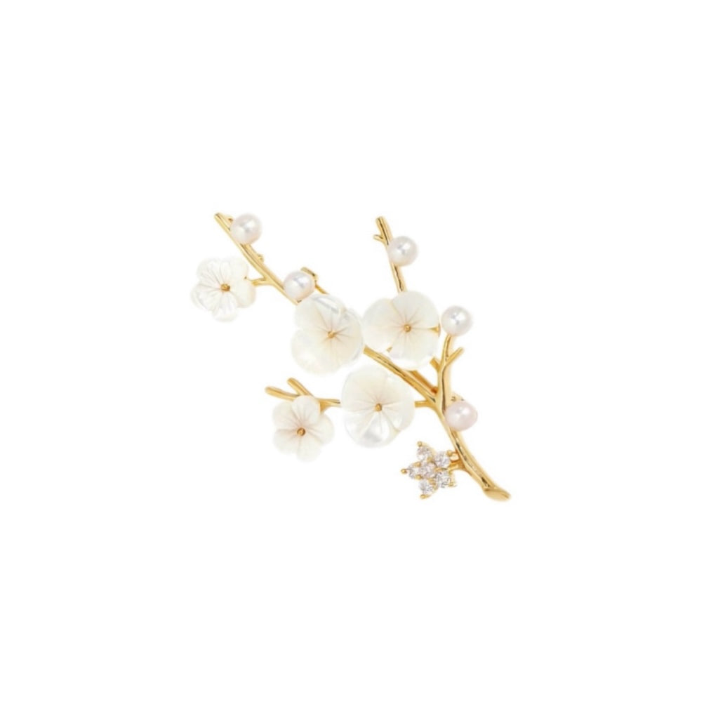 The branch is accented with premium mother-of-pearl beads, while a radiant bloom set with 5A-grade three-dimensional cubic zirconia adds a sparkling highlight, bringing intricate craftsmanship to life.